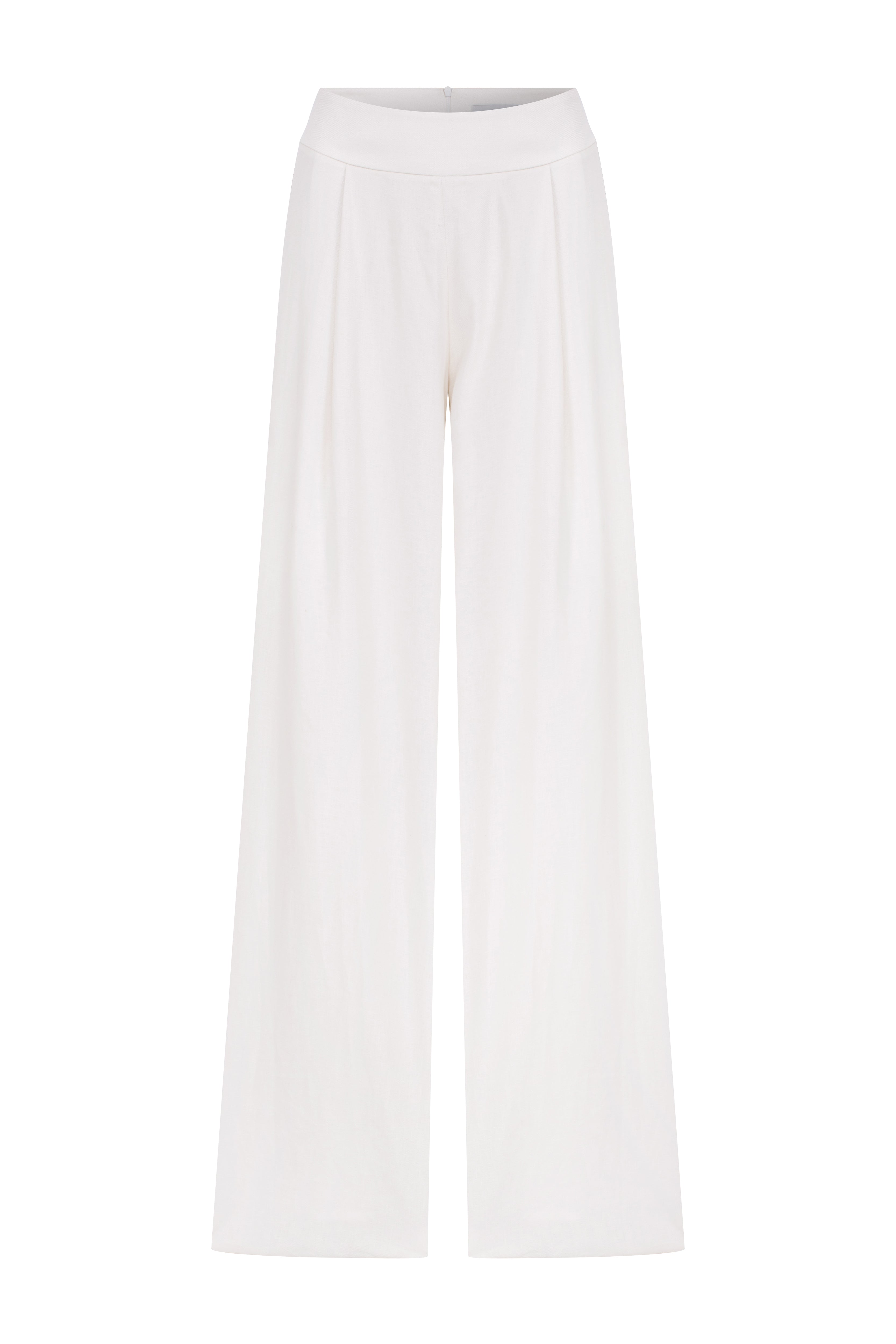 Mui Geniş Paça Keten Pantolon Beyaz