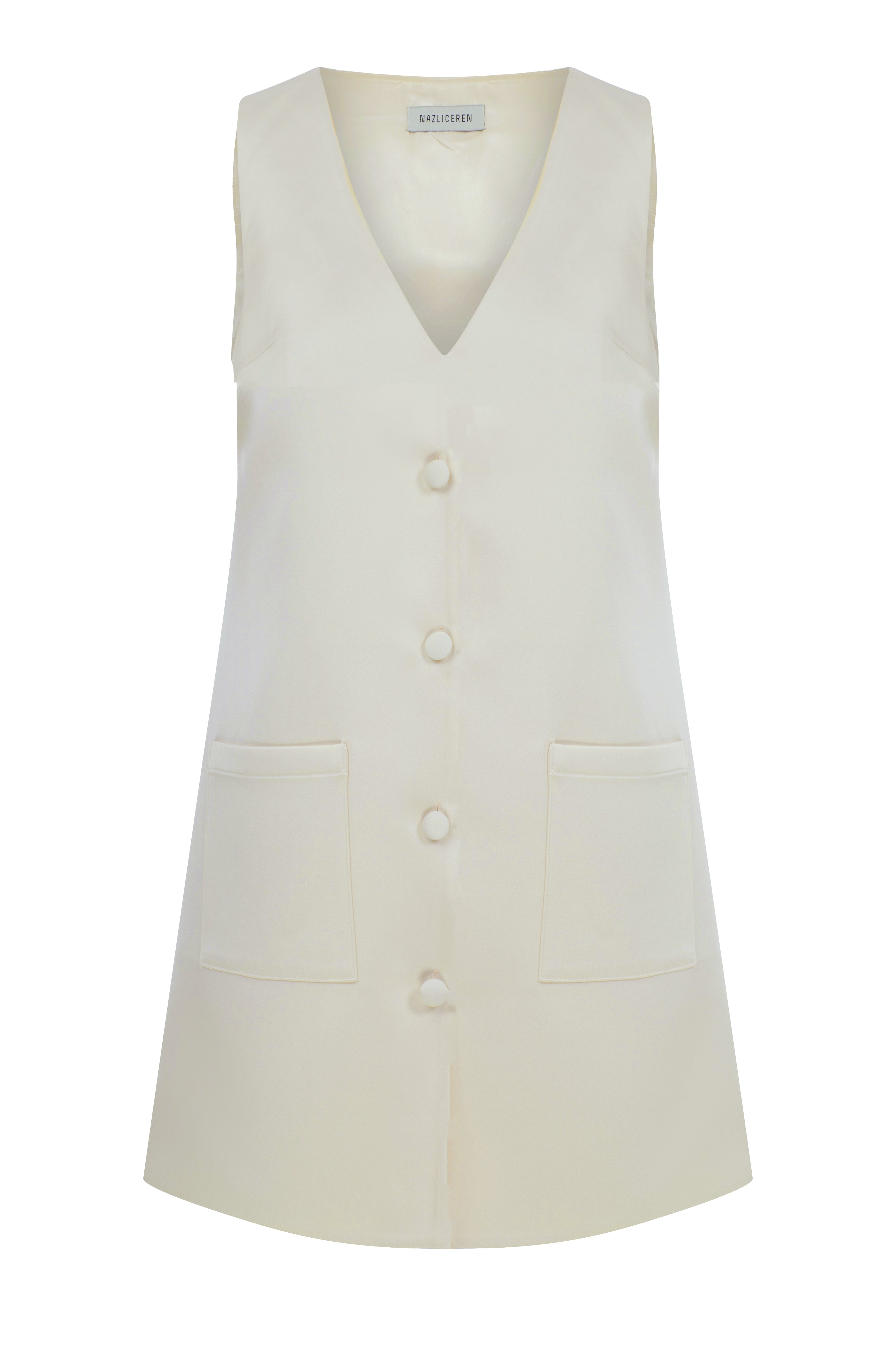 Odessa Mini Elbise, kırık beyaz krep kumaştan üretilmiştir. Rahat bir kalıbı vardır, kendi bedeninize göre seçebilirsiniz.