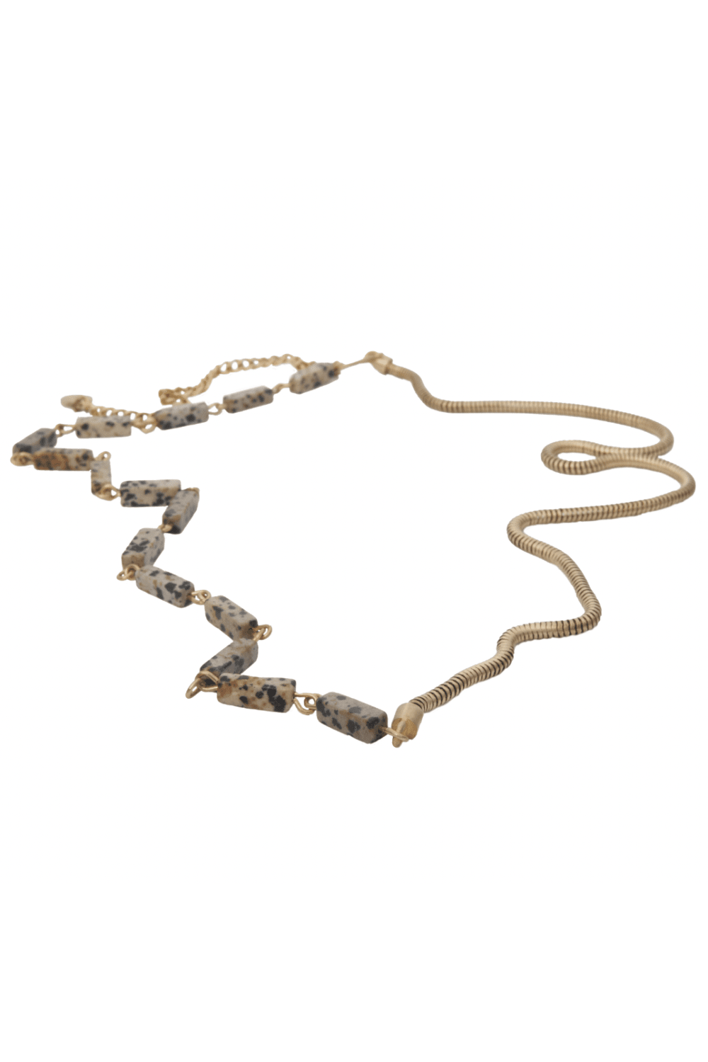 Dalmatian Jasper taşlar ile brassghetti zincir kolye, ayarlanabilir zinciri ile