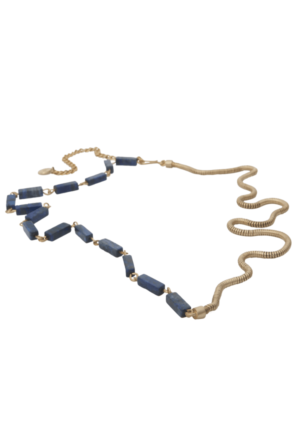 Lapis Lazuli taşlar ile brassghetti zincir kolye, ayarlanabilir zinciri ile