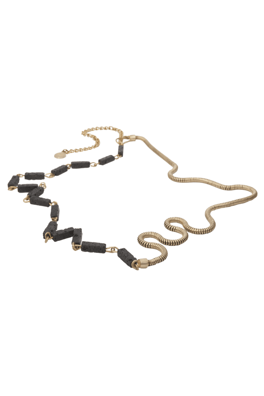 Lav taşları ile brassghetti zincir kolye, ayarlanabilir zinciri ile