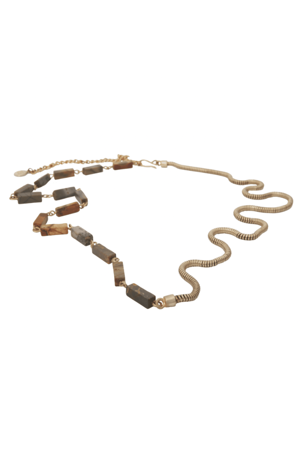 Picasso Jasper taşlar ile brassghetti zincir kolye, ayarlanabilir zinciri ile