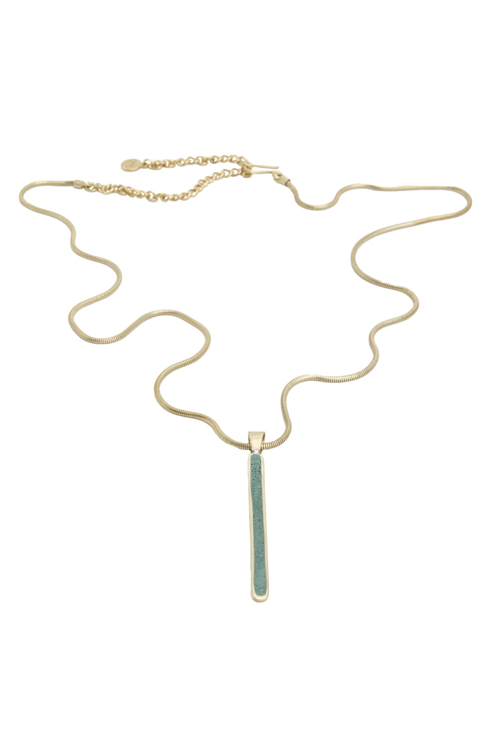 Malahit kakma pirinc ucu ile el yapimi kolye. Ayarlanabilir brassghetti zincir ile beraber satilir.