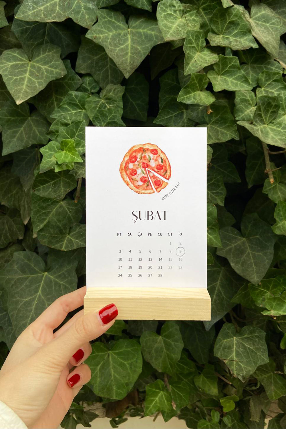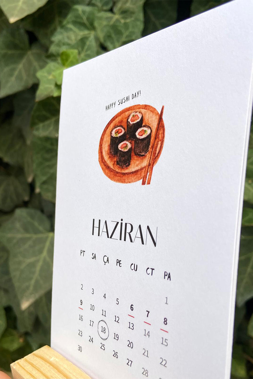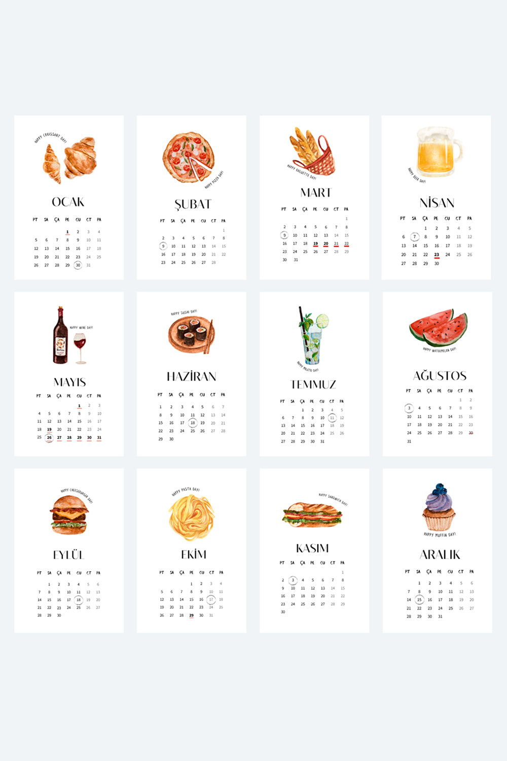 • İçerik: Her ay, özel bir "gıda ve içecek günü" (örneğin, Pizza Günü, Sushi Günü) illüstrasyonu ile dolu. Her sayfa, belirli bir yiyecek veya içeceğin kutlandığı günü vurguluyor.
