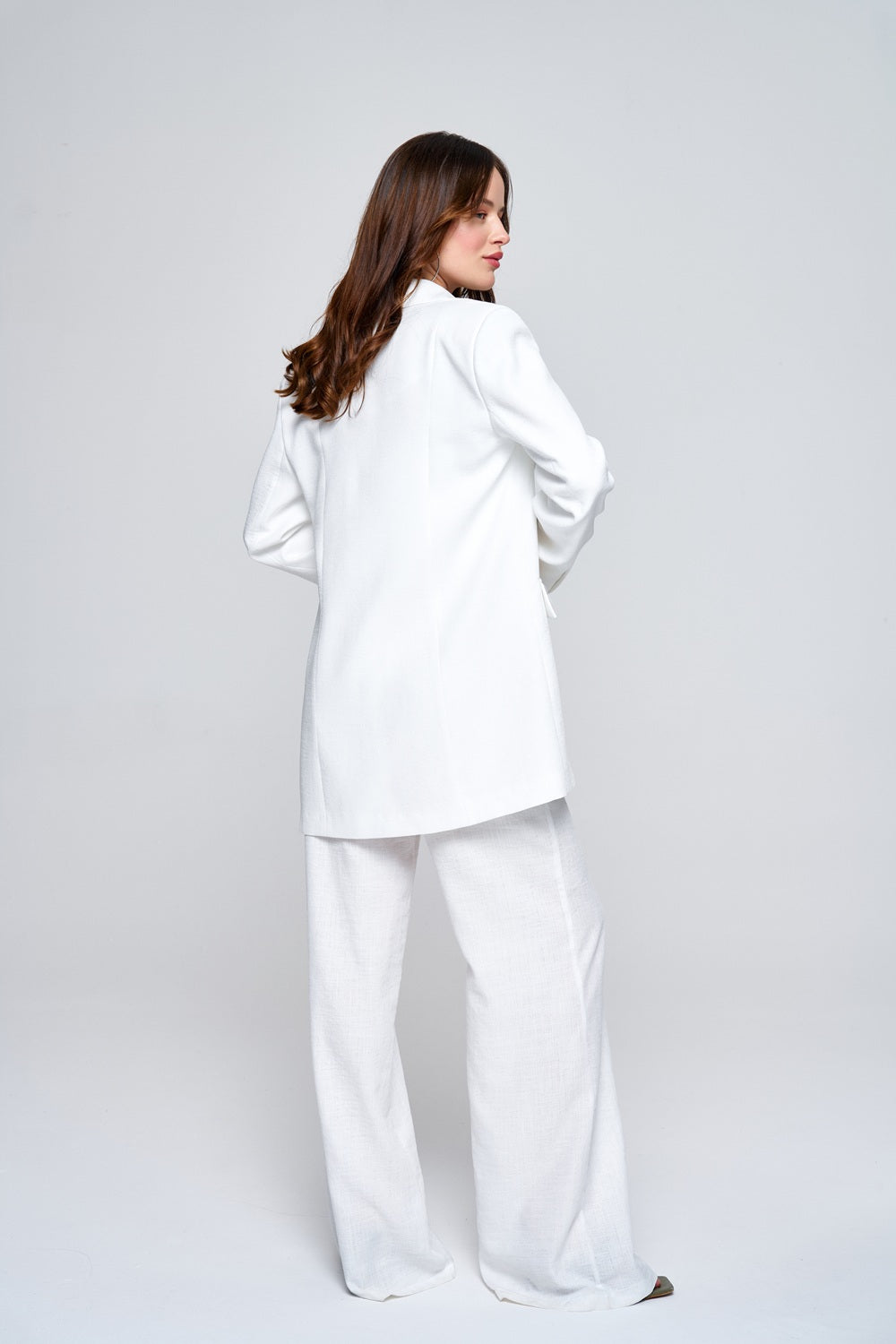 Keten Beyaz Yüksek Bel Pantolon