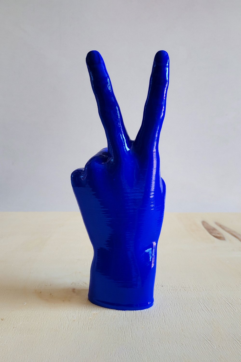 Bu özel "Peace" el heykeli, 3D baskı teknolojisi ile PLA biyopolimerden üretilmiş ve ardından el işçiliğiyle özenle tamamlanmıştır.