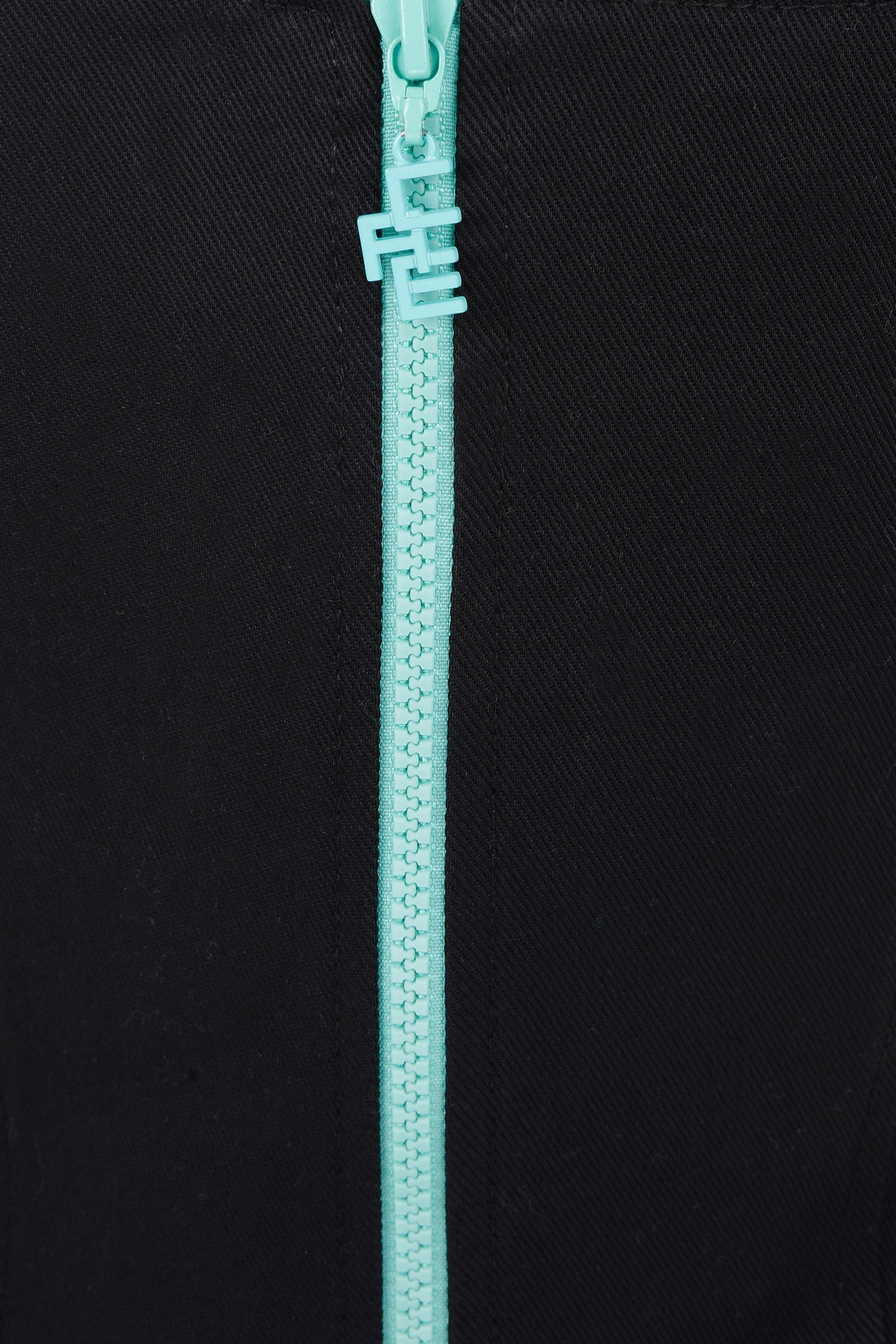 You can easily combine this black corset which can be easily worn and removed with its mint green zipper and ACE logo detail on the back. You can even wear it under jumpsuits. This corset will be a must-have item in your closet this winter, with its comfortable denim fabric.