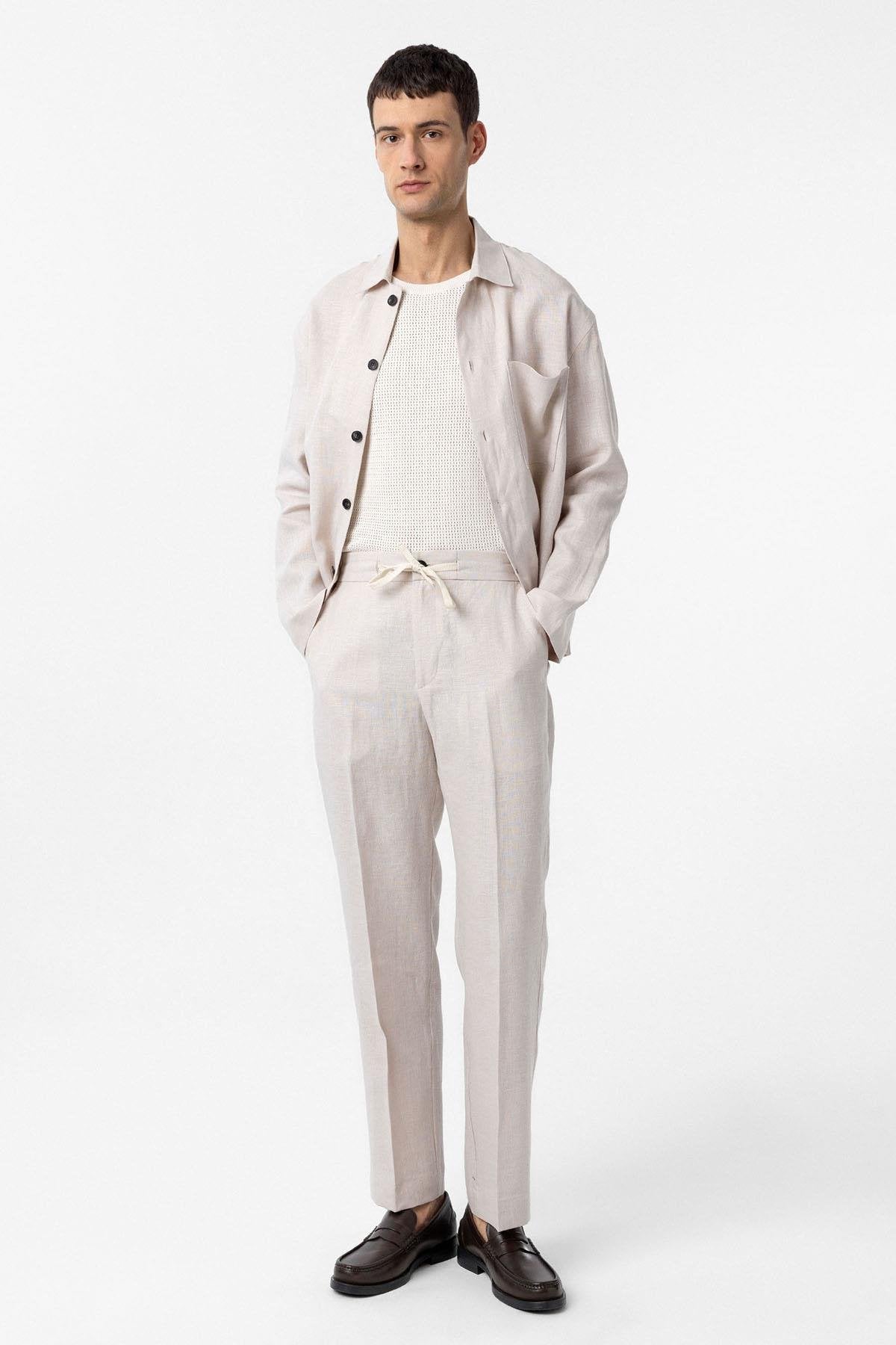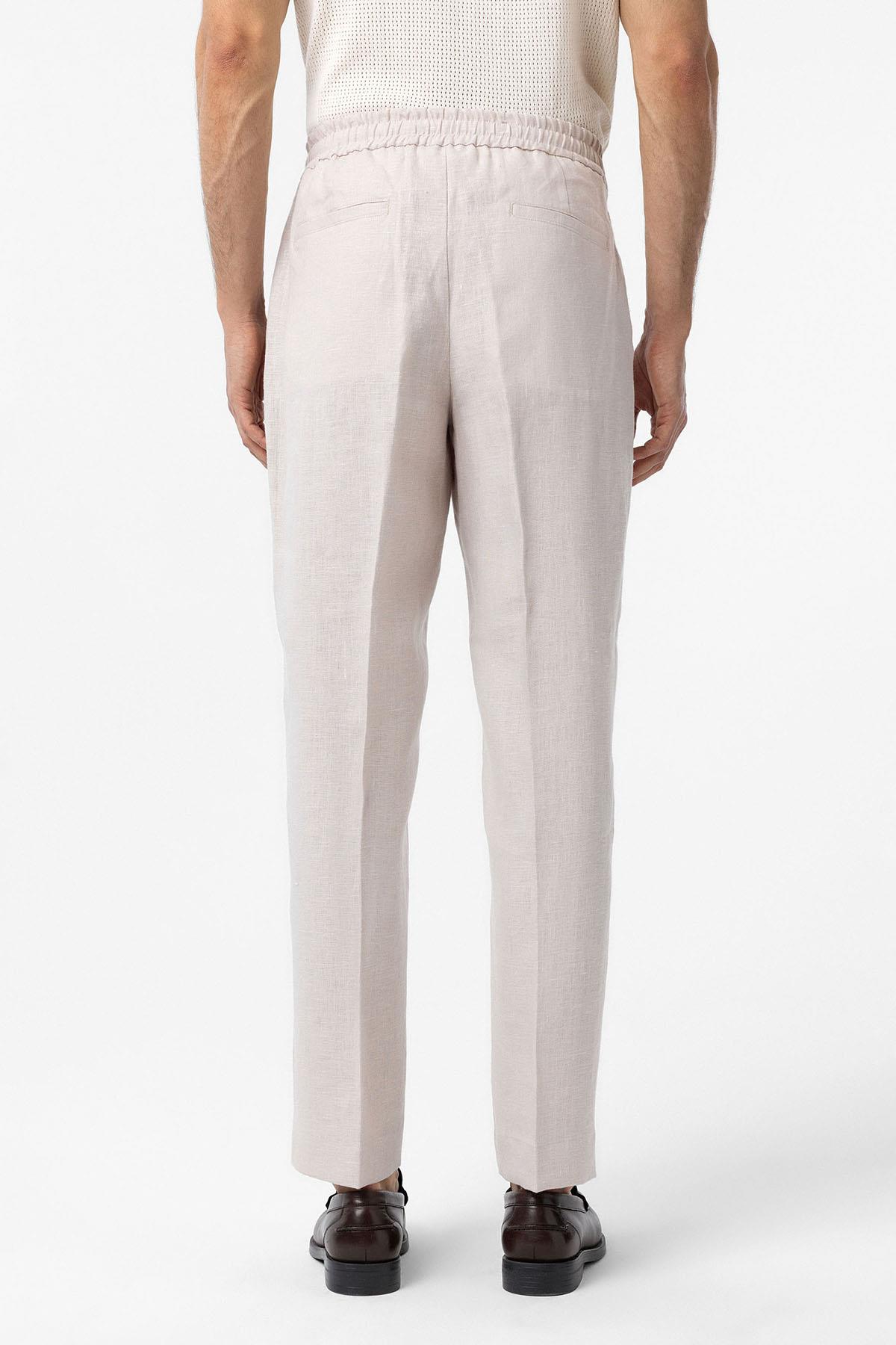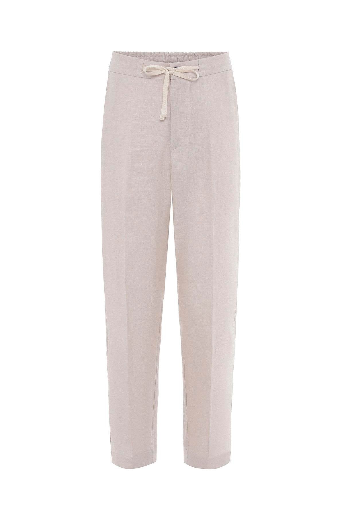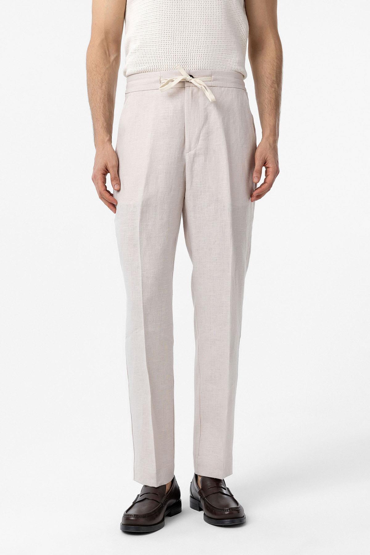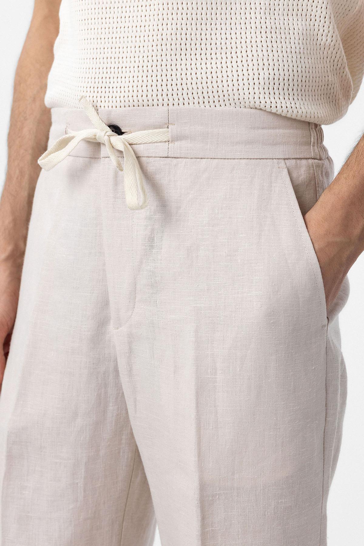 Ekru 100% Keten Yüksek Bel Erkek Pantolon