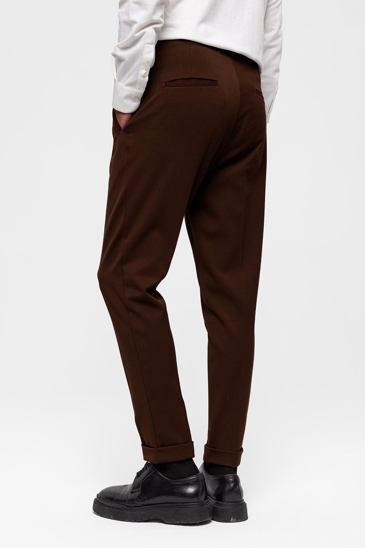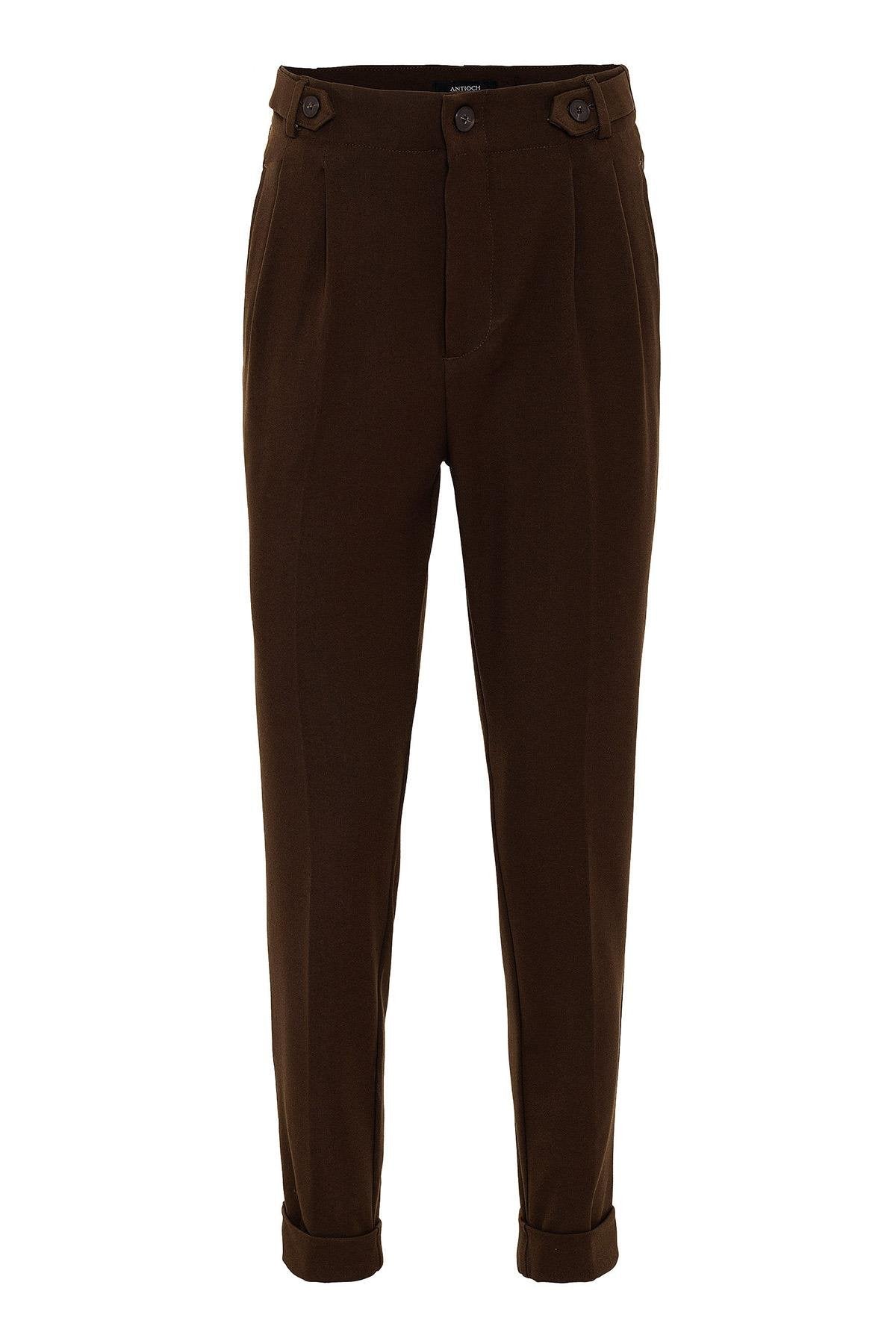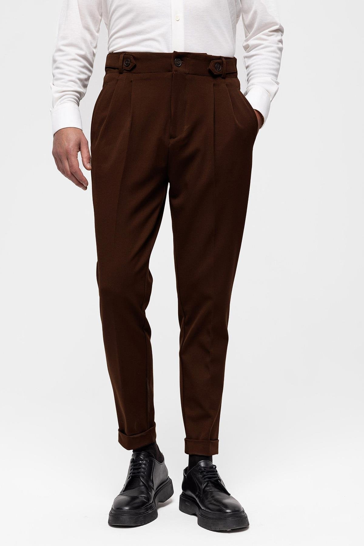Koyu Kahve Yüksek Bel (Boyfriend) Pileli Kumaş Pantolon