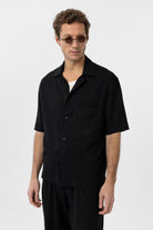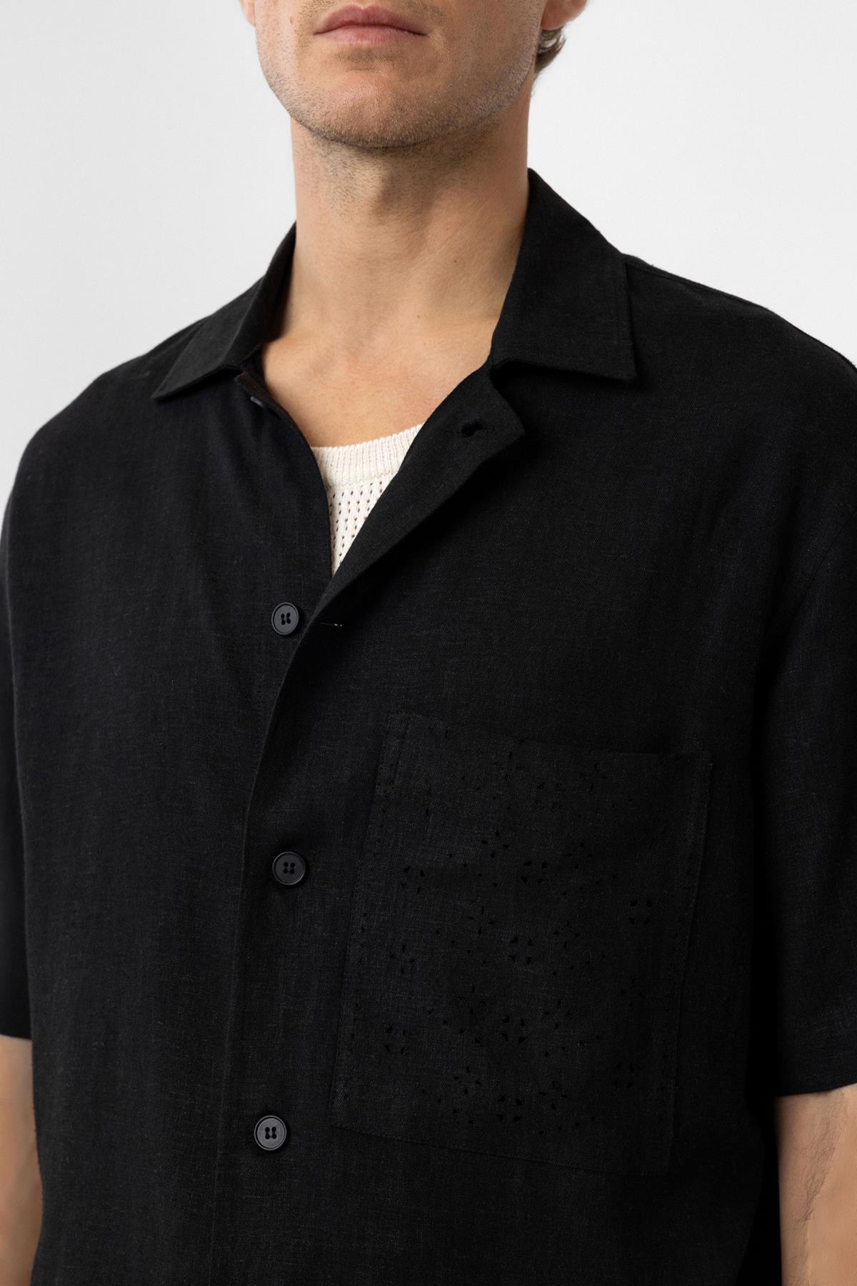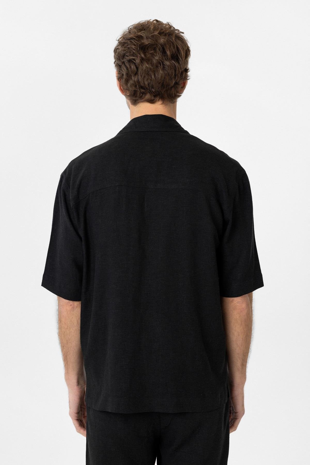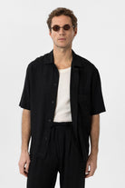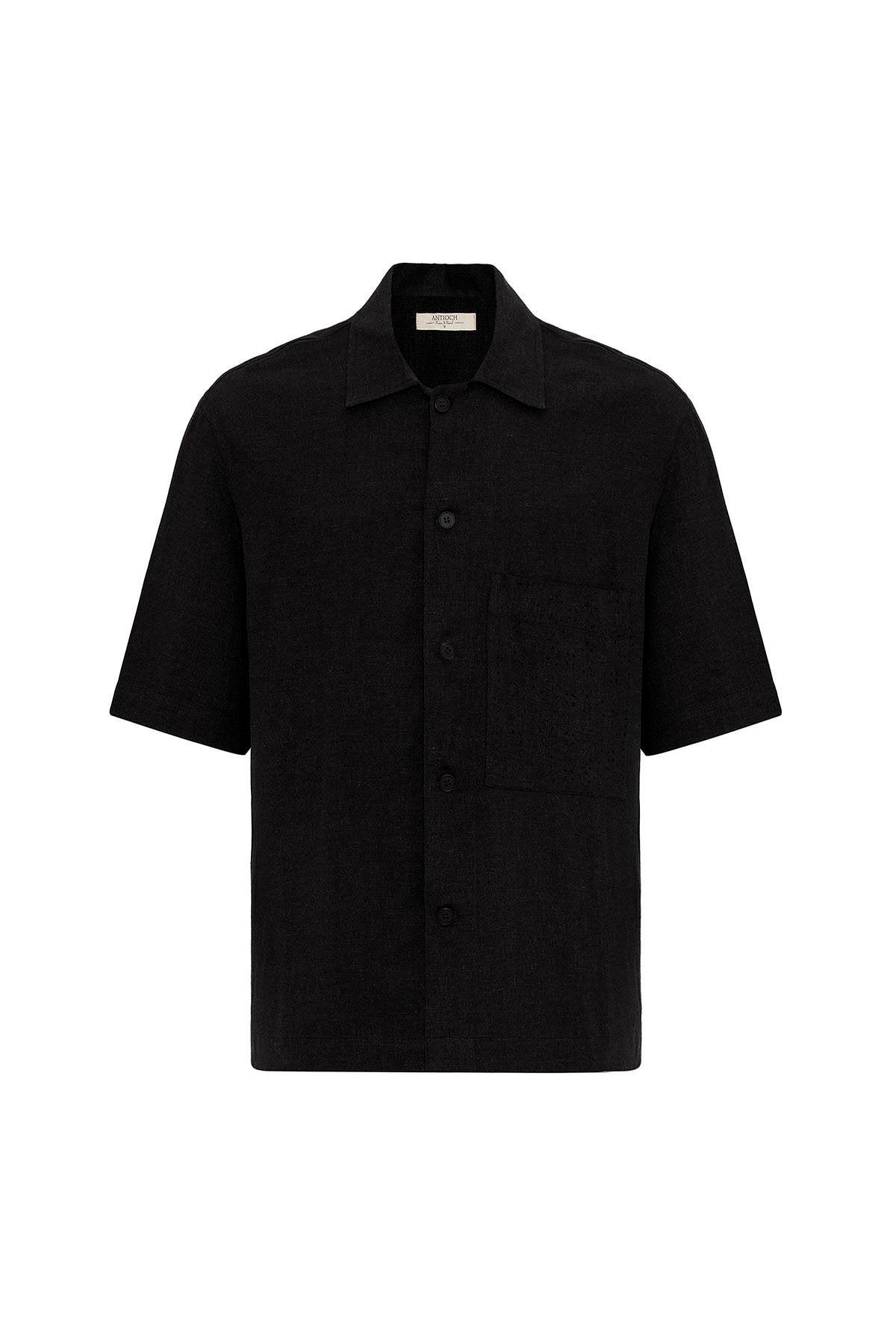 Siyah Keten Karışımlı Kısa Kollu Erkek Gömlek