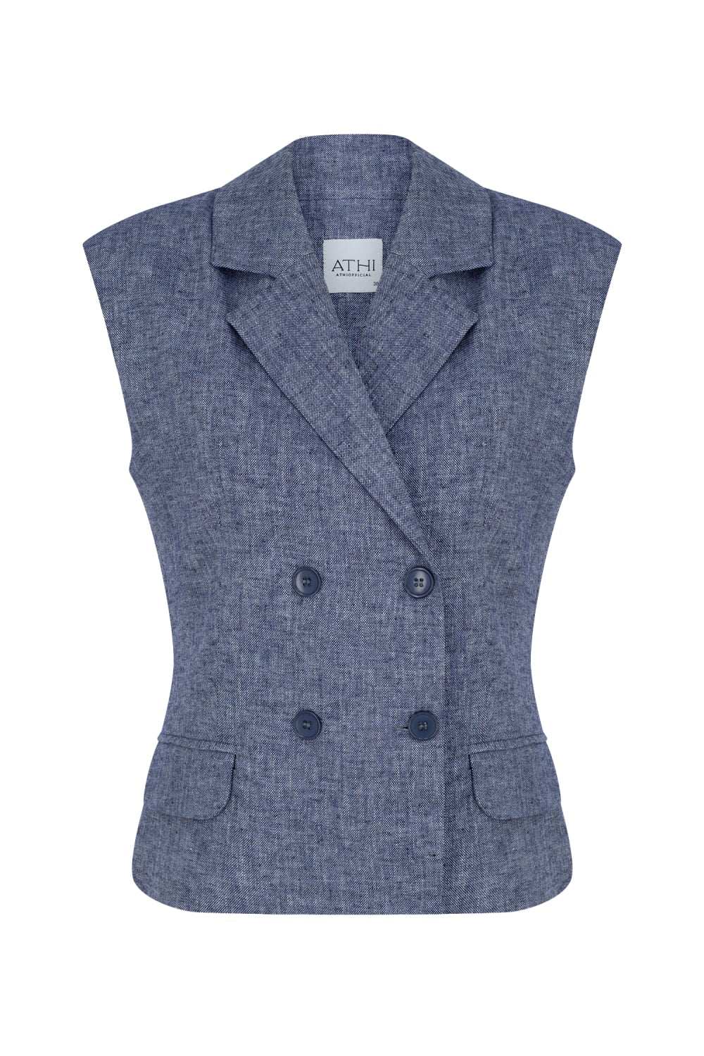 Keten douklu kumaş vatkalı yelek & kalem pantalon takım