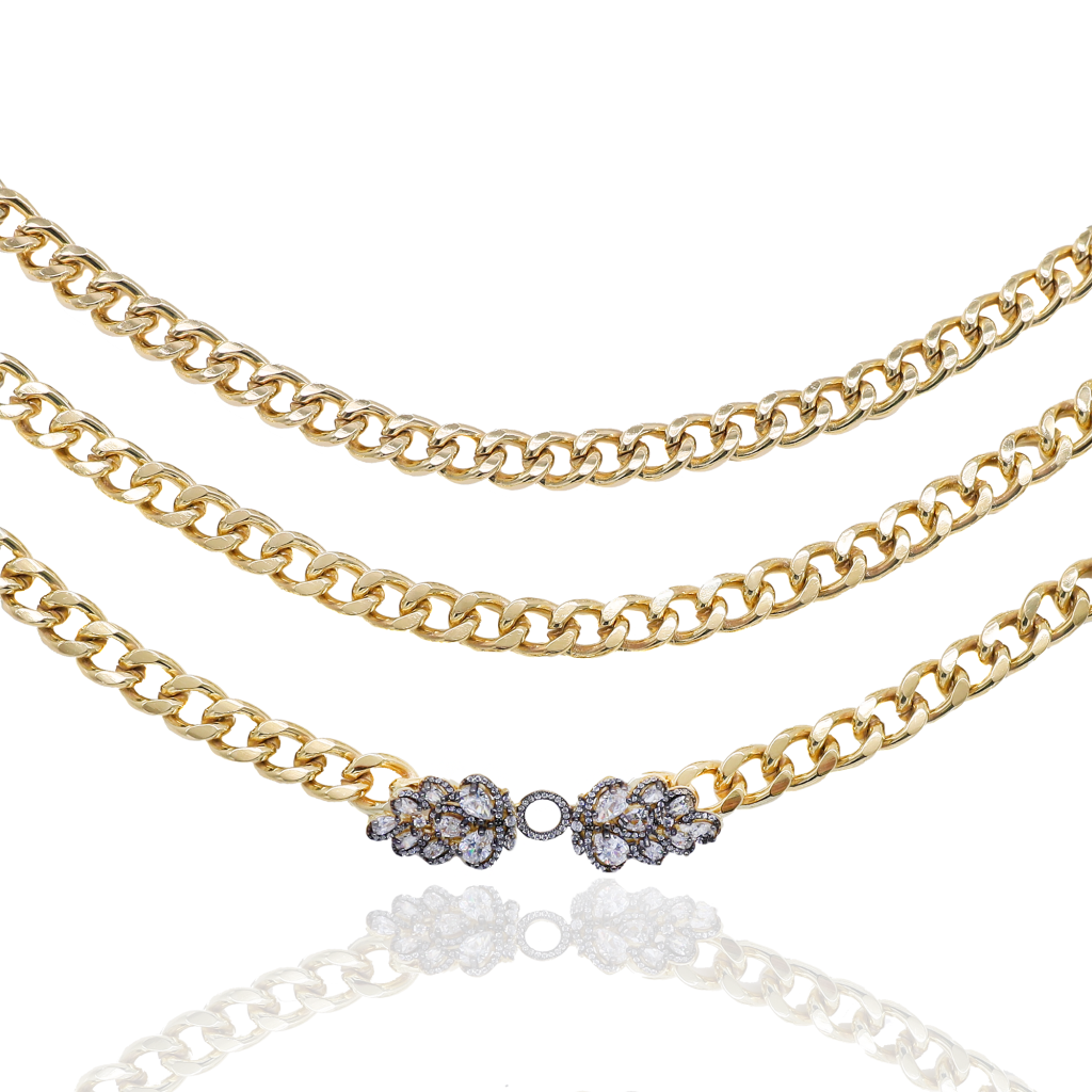 Materyal22 ayar altın kaplama pirinç zincir, pirinç üzeri star kesim taşı