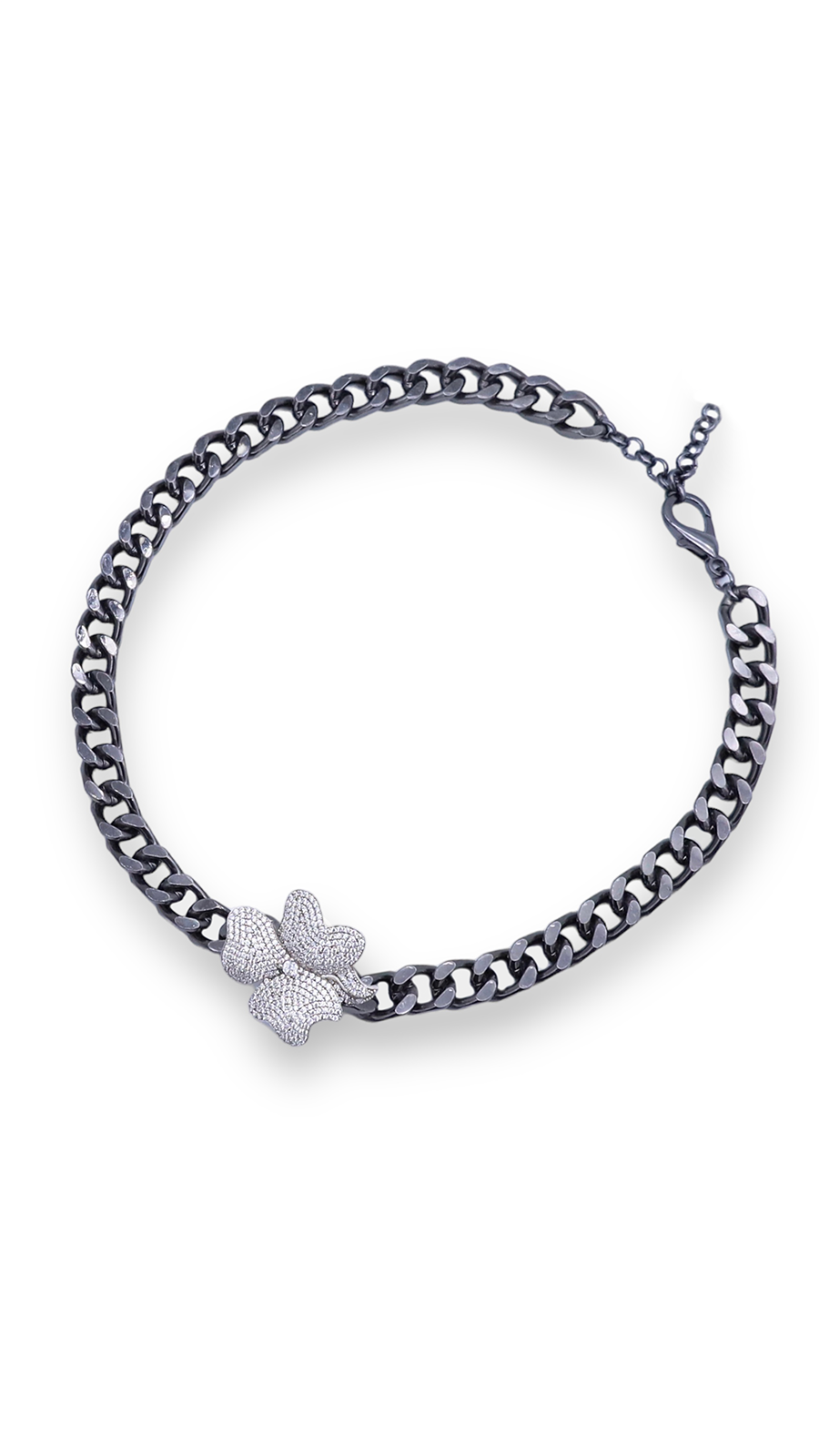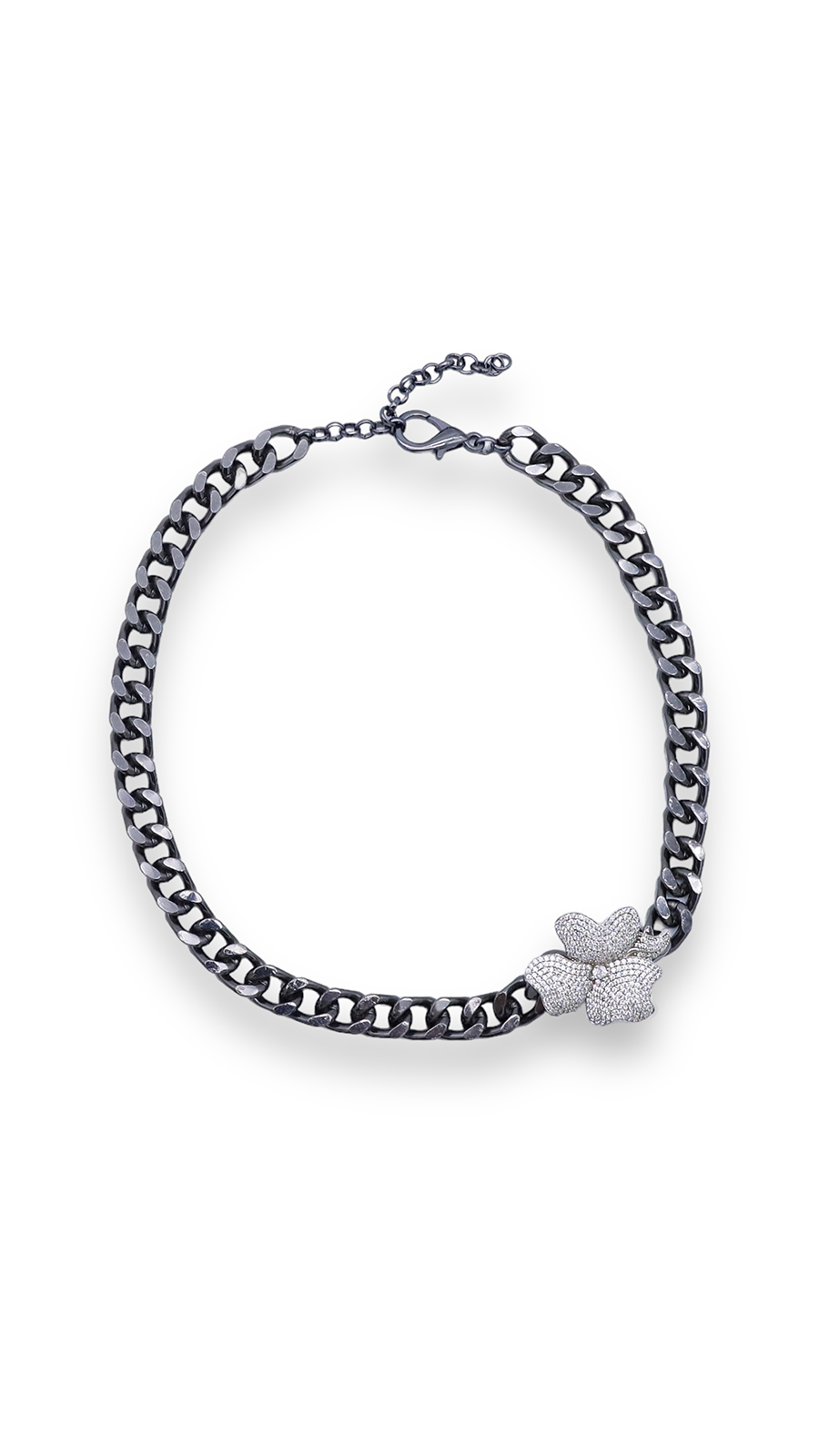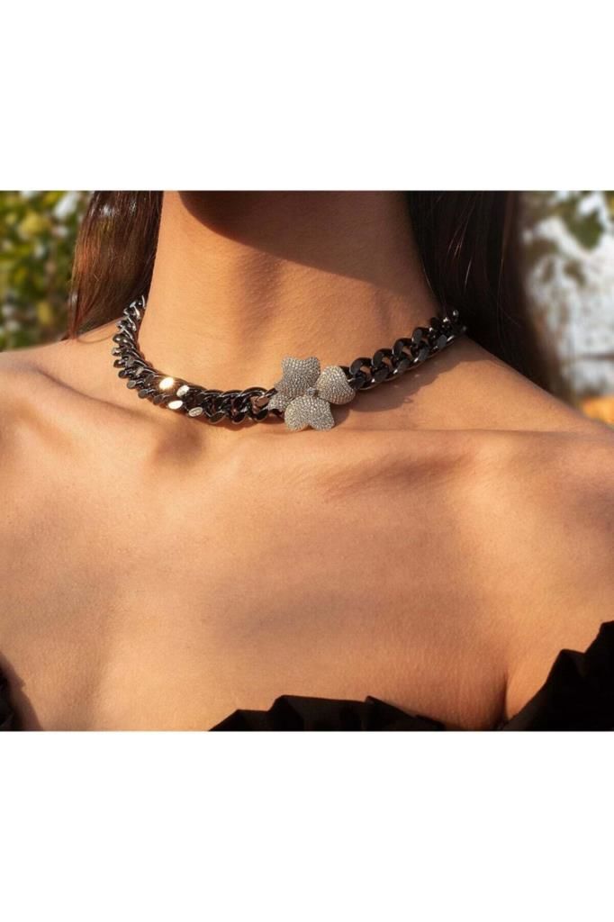GLORIA Zincir Kolye, rodyum kaplama pirinç zincir üzerinde, 925 ayar gümüşten işlenmiş ve kristal taşlarla süslenmiş bir çiçek sembolü ile taçlandırılmıştır. GLORIA Zincir Kolye'nin her bir detayı, incelikle düşünülmüş ve mükemmellik arayışının bir yansıması olarak dikkat çeker. Çiçek sembolü, doğanın uyumunu ve zarafetini temsil ederken, kristal taşlar ışığı yakalayıp yansıtarak kolyeye göz kamaştırıcı bir parlaklık katıyor. Bu çiçek, GLORIA Zincir Kolye'nin sadece merkezinde bir süs değil, aynı zamanda doğanın yenilenme ve büyüme gücünün bir simgesi olarak duruyor.