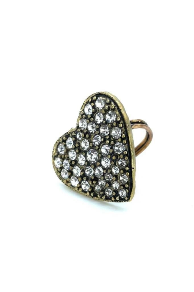 Kalp Ayarlanabilir Elmas Montür Bronz Yüzük