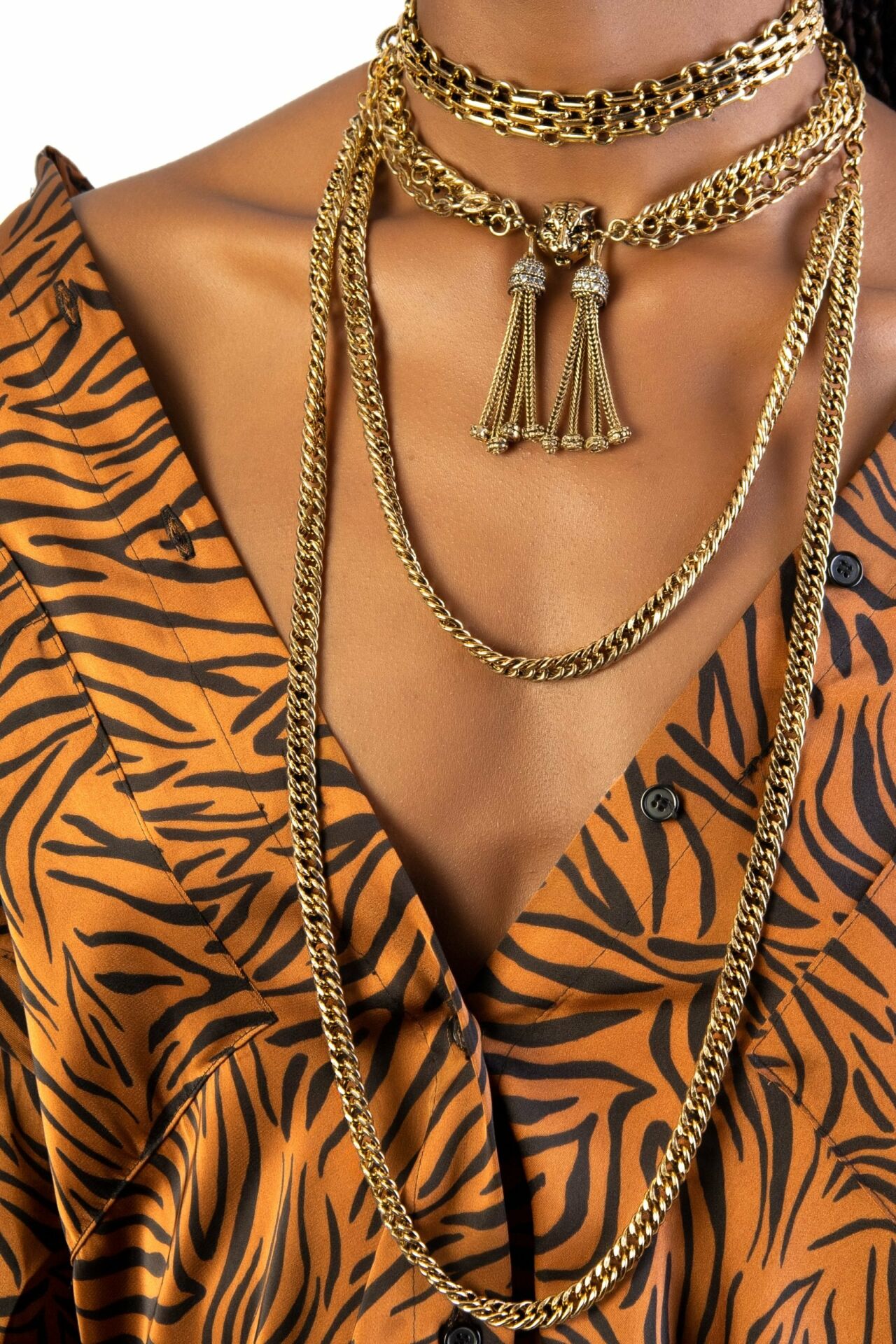 Kaplan Altın Kaplama Choker Kolye