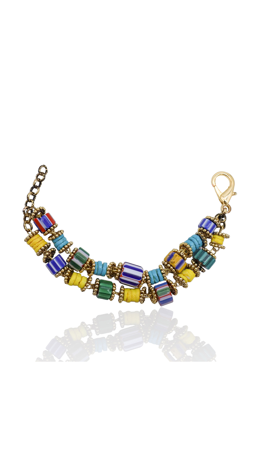 VISTOSO Doğal Taş Bileklik, sofistike bir tasarımın ve ustalıkla işlenen detayların birleşimini yansıtıyor. 22 ayar altın kaplama zincirin her bir halkası, özenle boyanmış doğal taşlar ve sedef parçalarıyla süslenirken; ara materyaller olarak kullanılan 22 ayar altın kaplama pirinç, bilekliğe ek bir derinlik ve parlaklık kazandırıyor. VISTOSO Doğal Taş Bileklik, yazın enerjisini ve canlılığını bileğinizde hissetmenizi sağlayacak mükemmel bir aksesuar.