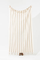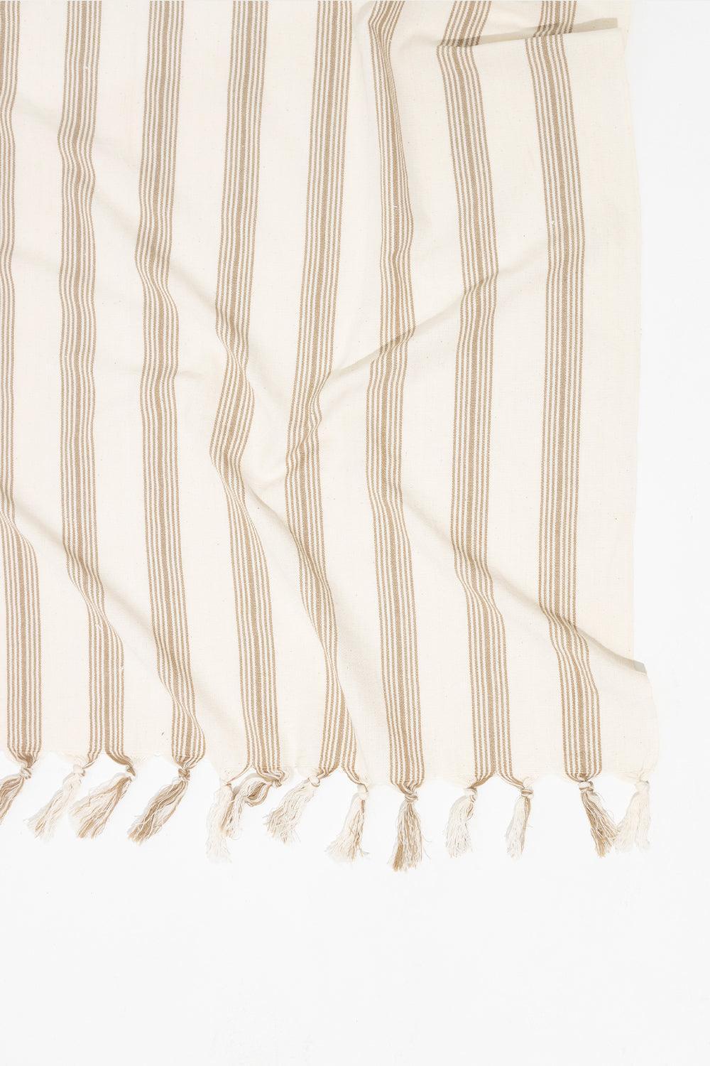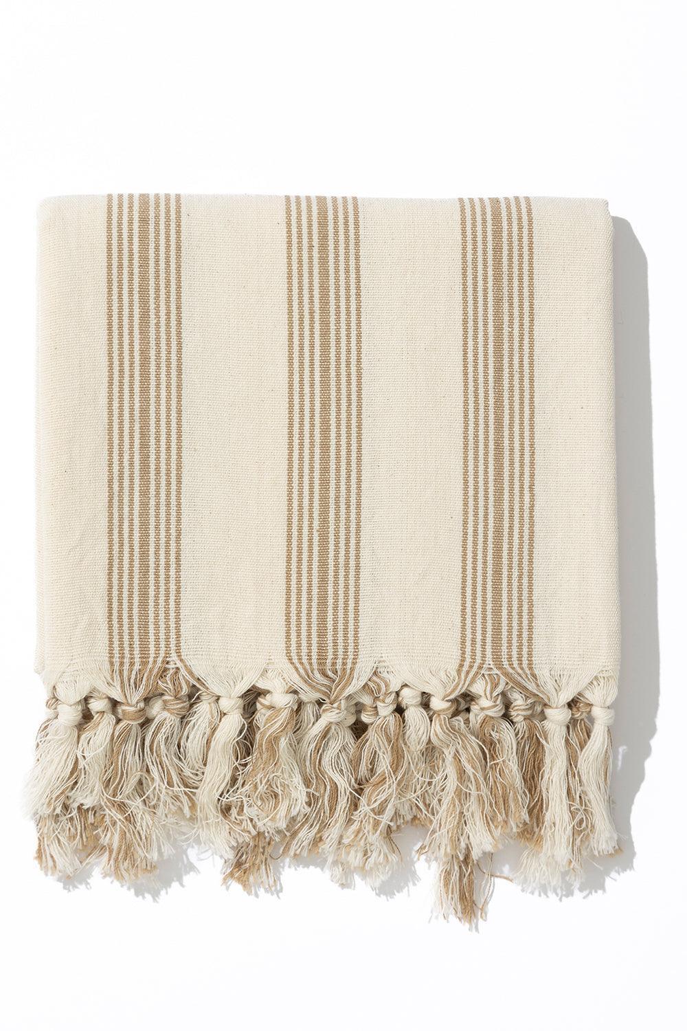 Olive peshtemal is traditionally woven on wooden looms by local artisans.