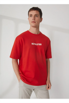 BİSİKLET YAKA ÖNÜ BASKILI OVERSIZE TSHIRT