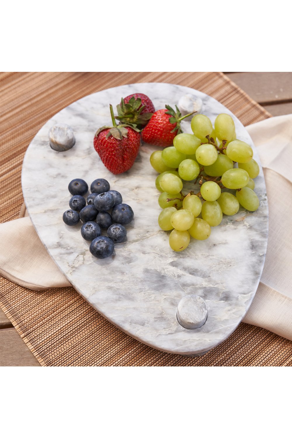 Üç adet zarif ayak üzerinde yükselen bu tabak, sunumlarınıza hafiflik ve şıklık katıyor. Ayaklar, tabağın yüzeyle temasını keserek hem görsel bir estetik sunuyor hem de pratik bir kullanım imkanı tanıyor. İster tatlılarınızı, ister mezelerinizi, isterseniz de diğer özel lezzetlerinizi sergileyin; bu mermer tabak, her sunumu daha özel kılacak.