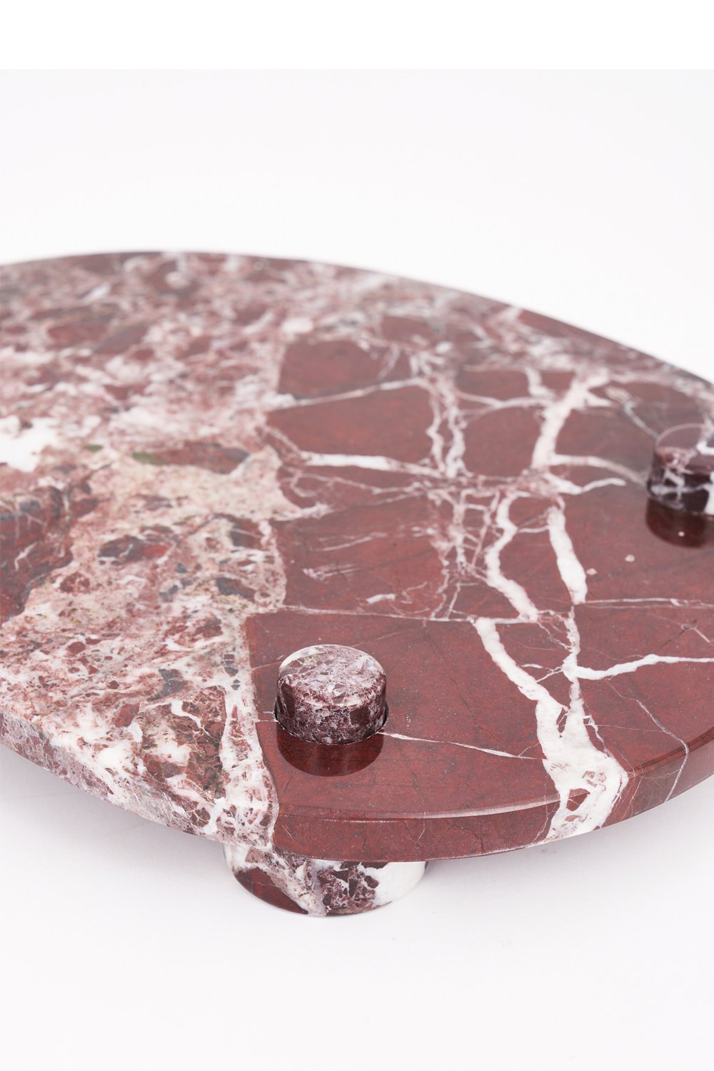 Üç adet zarif ayak üzerinde yükselen bu tabak, sunumlarınıza hafiflik ve şıklık katıyor. Ayaklar, tabağın yüzeyle temasını keserek hem görsel bir estetik sunuyor hem de pratik bir kullanım imkanı tanıyor. İster tatlılarınızı, ister mezelerinizi, isterseniz de diğer özel lezzetlerinizi sergileyin; bu mermer tabak, her sunumu daha özel kılacak.