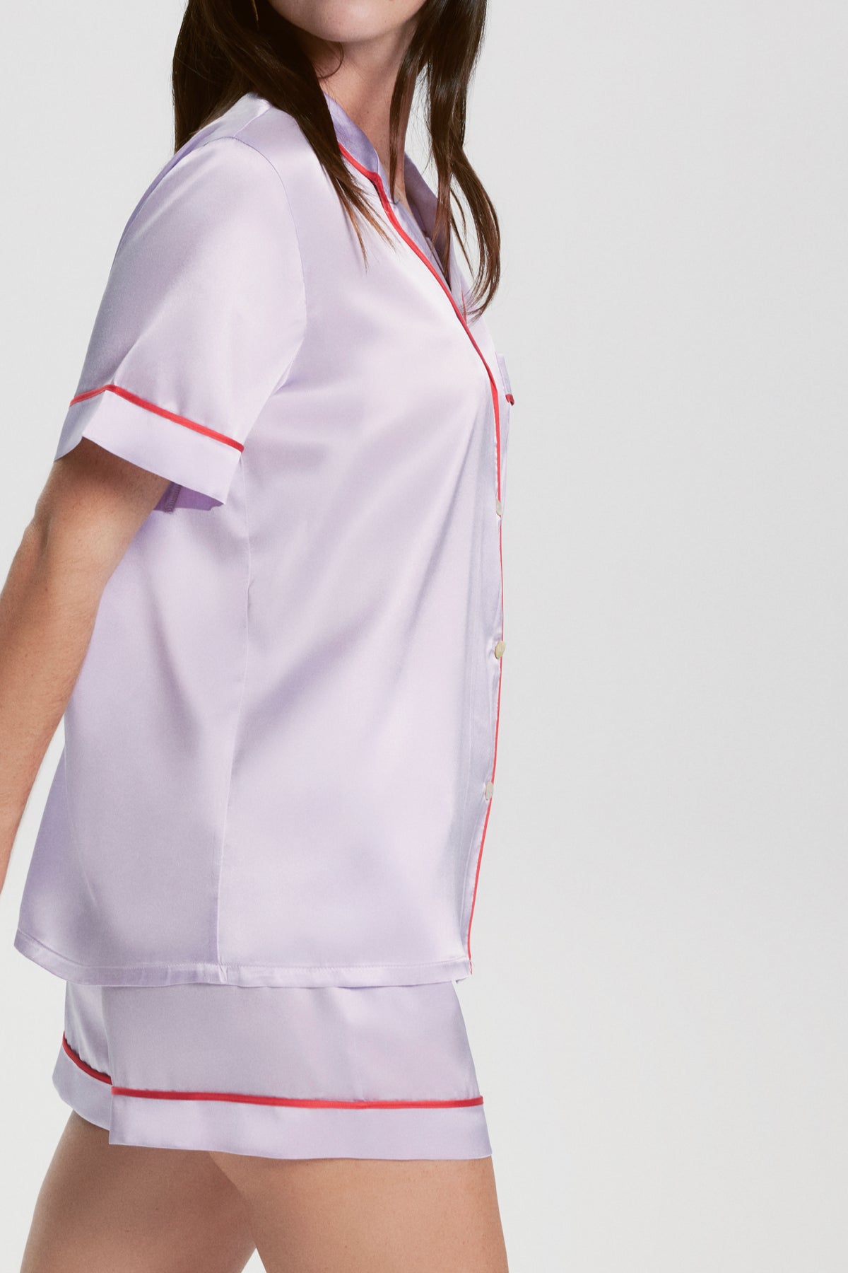 Zarif, şık ve zamansız çizgisiyle Lüks İpek Pijama takımımız! Zarif Lila rengindeki Lüks İpek Şort Pijama Takımı hem sokak hem de ev stilinize uygun bir görüntü içerir.