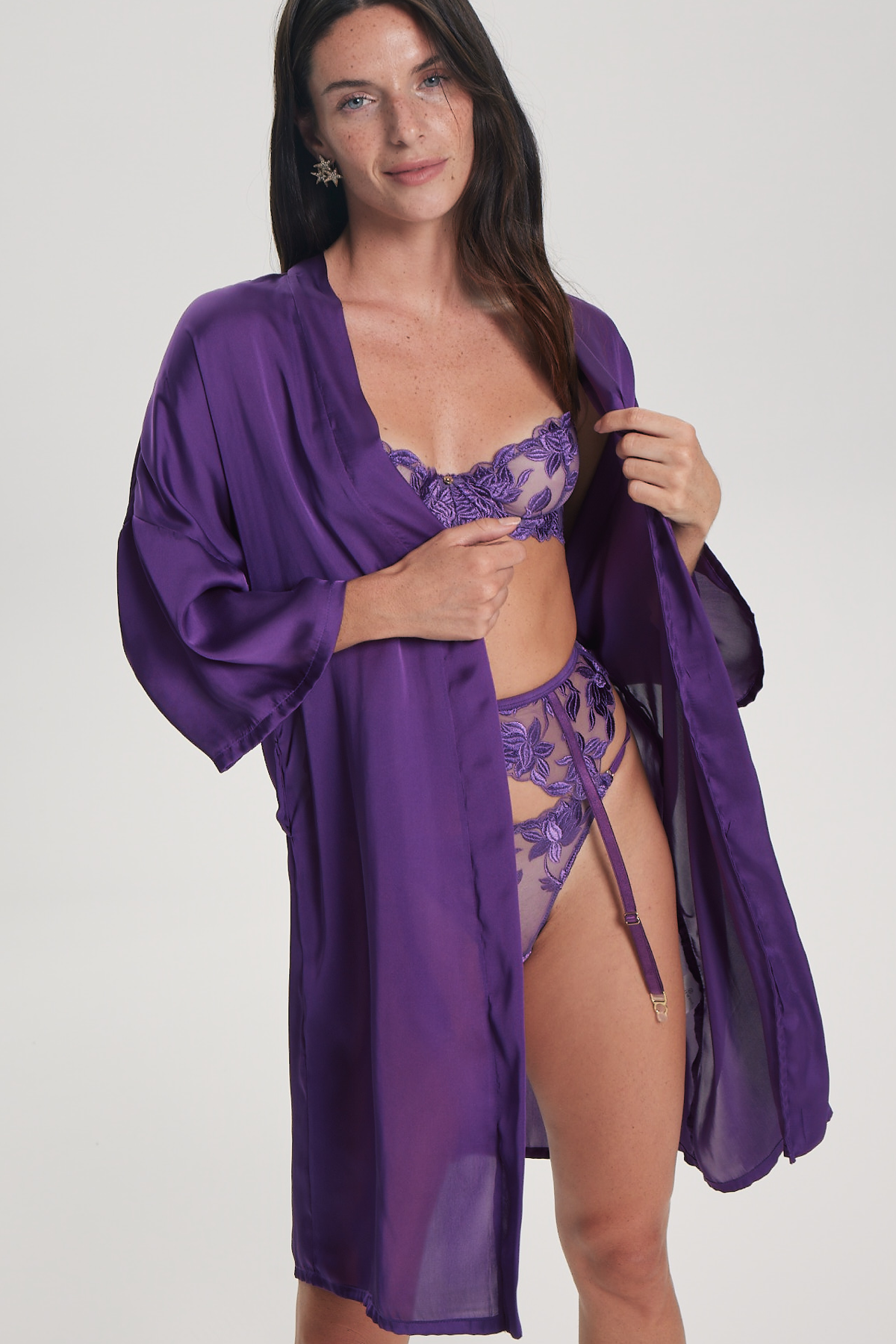 Gece moru saten sabahlığınız koleksiyonunuzda vazgeçemeyeceğiniz parçalarınızdan olmak için hazır. Sabah rutininizi gece moru slip elbise ve sabahlığınızla tamamlayın.