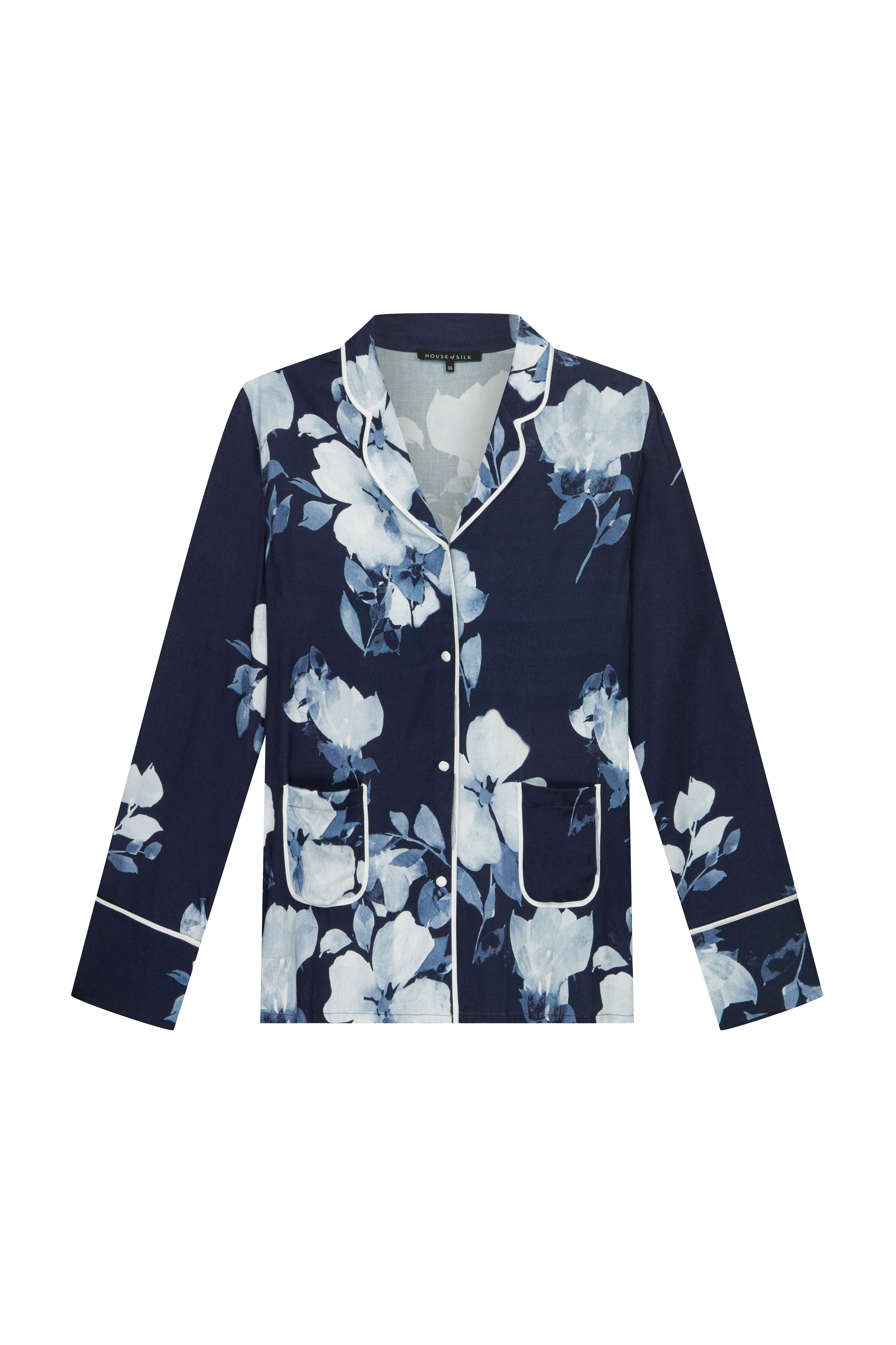 Lavinia Çiçek Desenli Viskon Pijama Takımı Lacivert