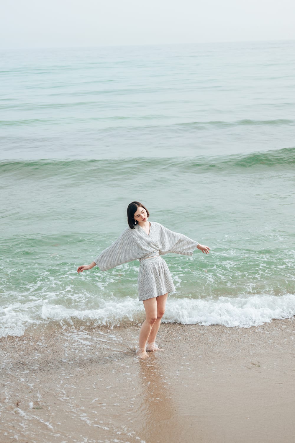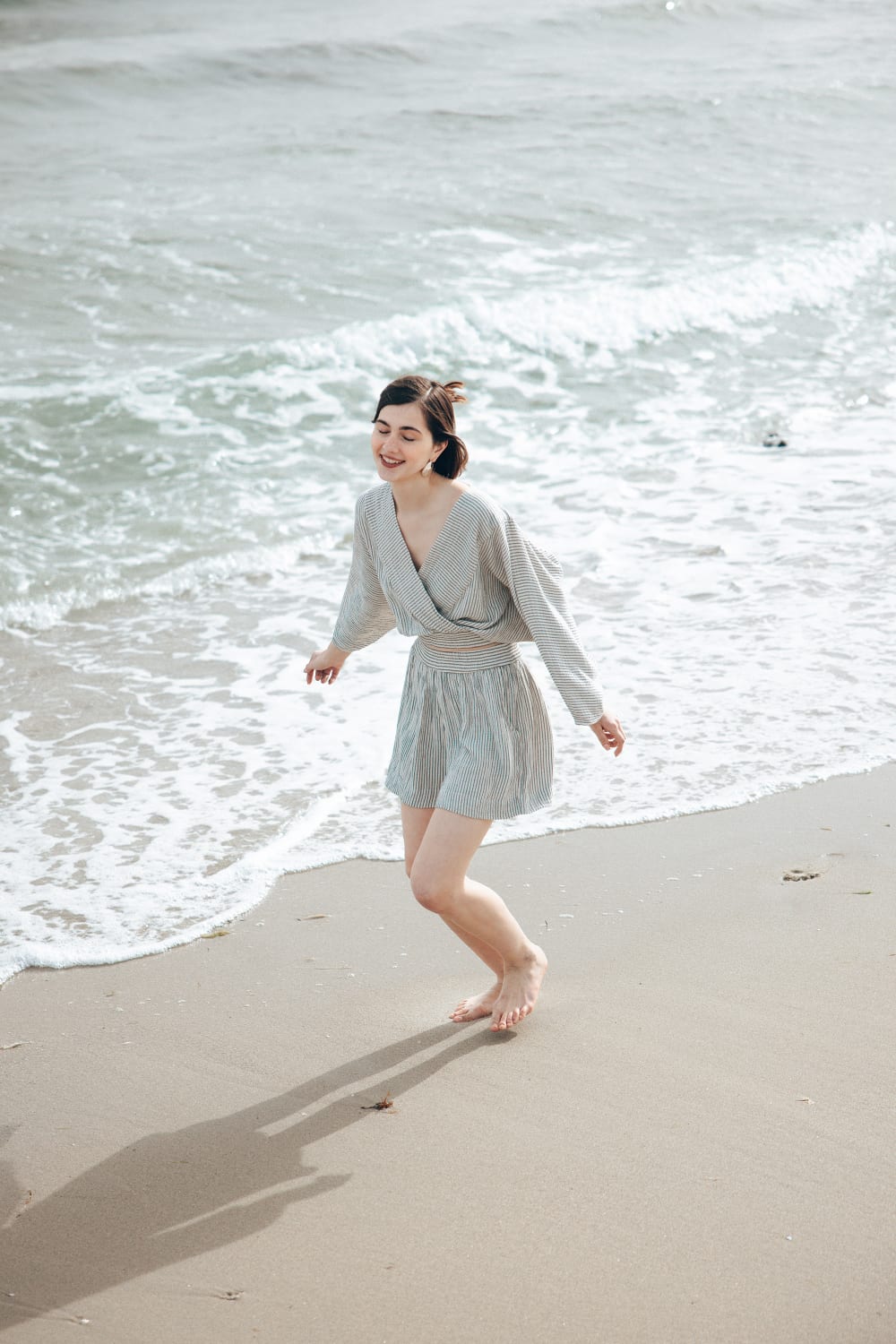 Crinkle Çizgili Bluz