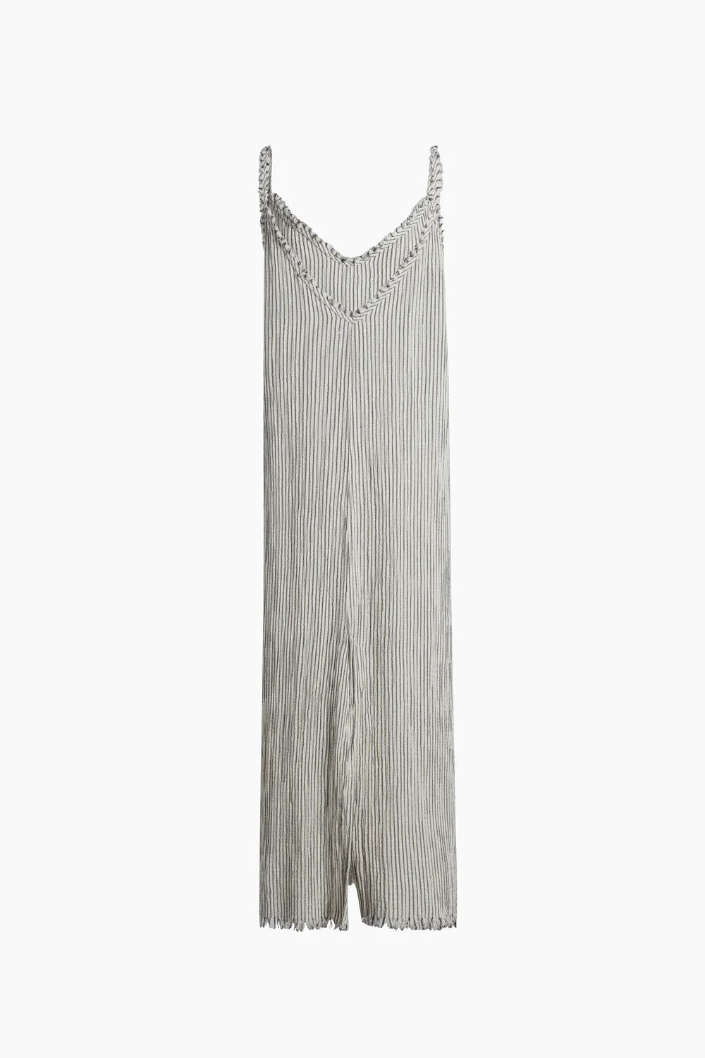 Crinkle Siyah Çizgili İp Askılı Elbise