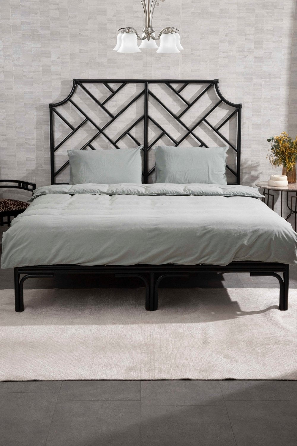 Set içerisinde yer alan nevresim, alttan kapamalı ve içten gizli sedef düğmelidir.