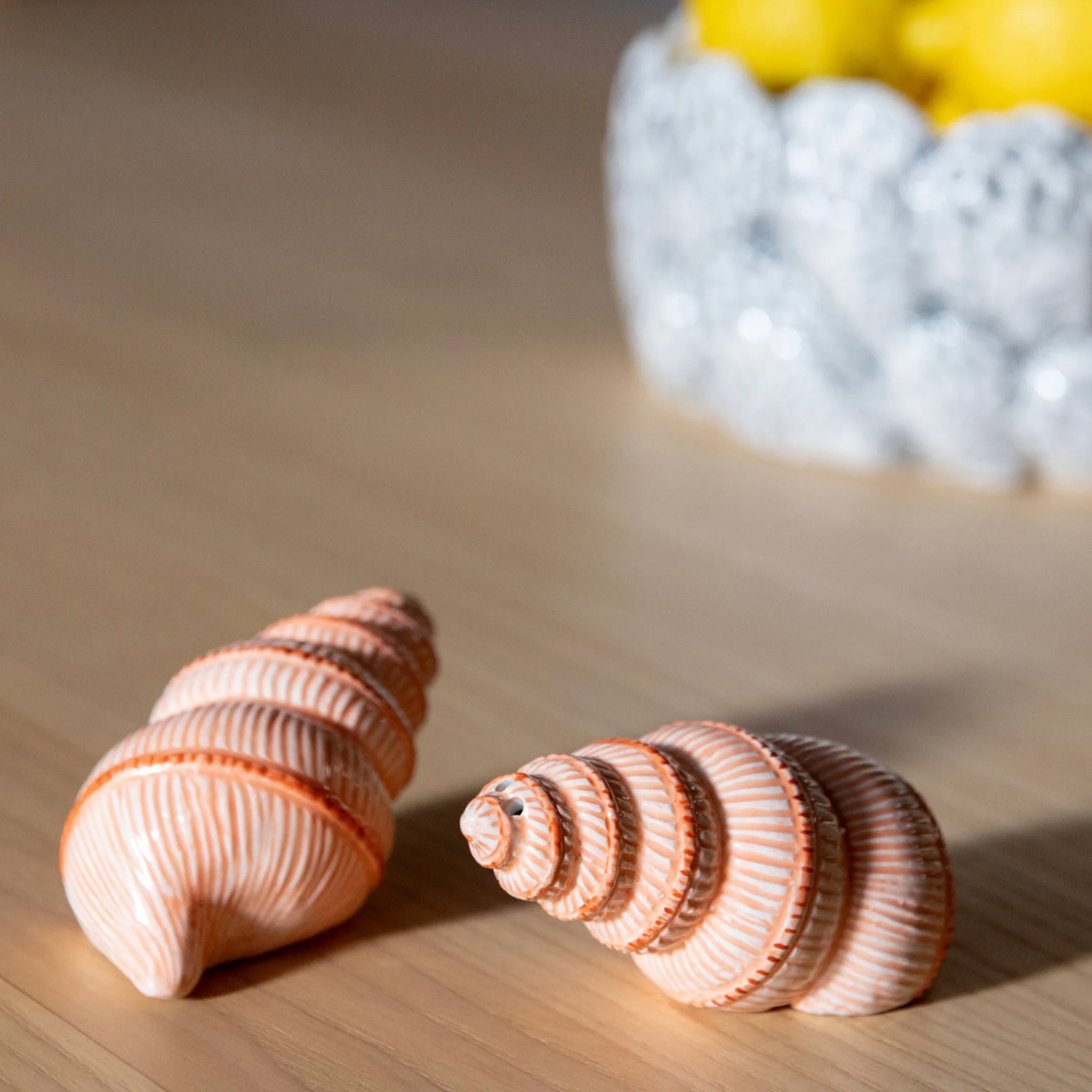 Bu deniz kabuğu tuz ve biber seti ile &k’nın sualtı dünyasına adım atın. İnce detaylarla tasarlanmış ve zarif turuncu tonlarında elle boyanmış bu set, sofranıza neşeli ve şık bir dokunuş katar.