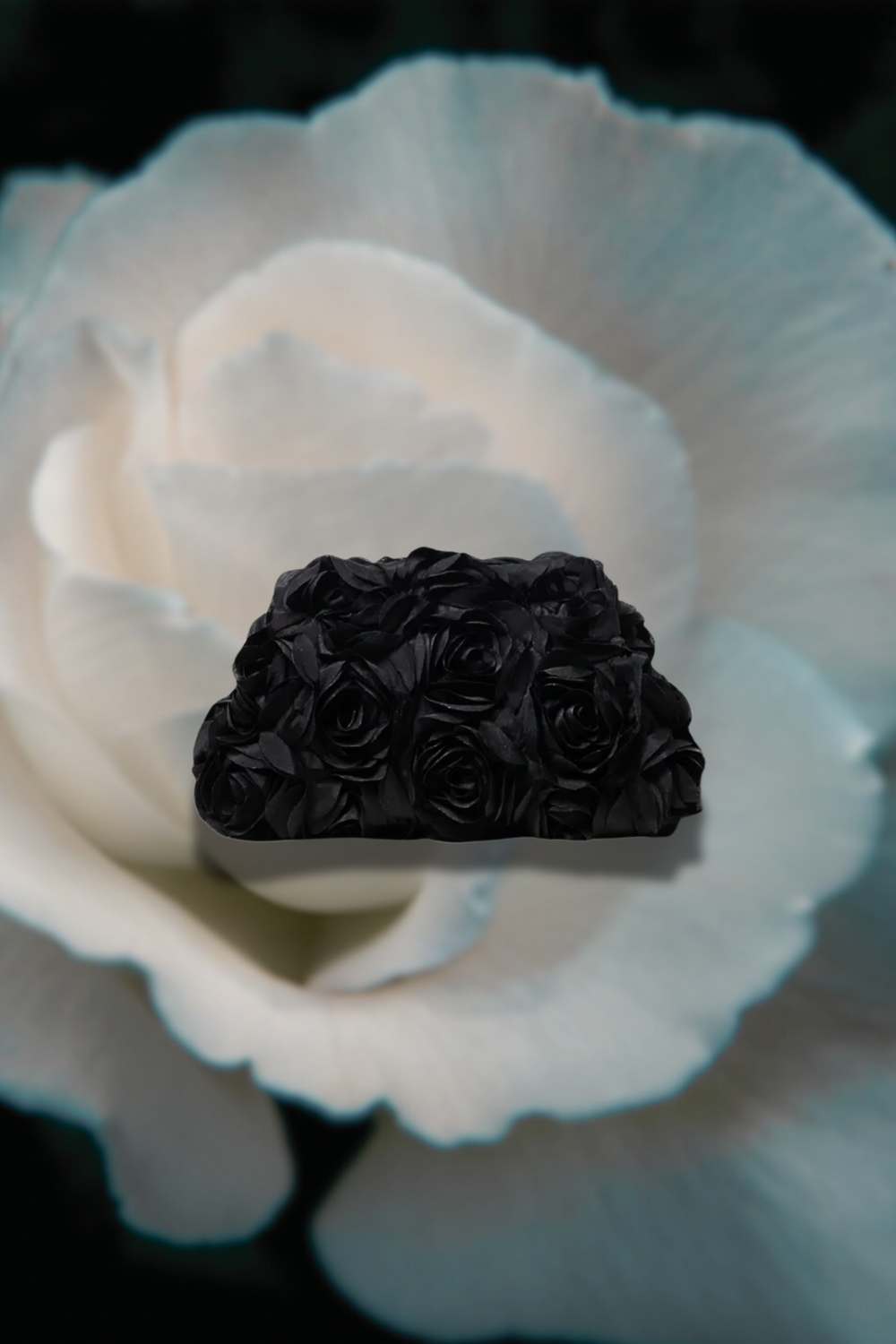 Amora Çantamızın zarafetini ve gücünü deneyimleyin. Zarif tasarımı, gücü ve zarafeti simgeleyen siyah güllerin inceliklerini taşıyan bu çanta ile temel ihtiyaçlarınızı güvenle ve şık bir şekilde taşıyın.