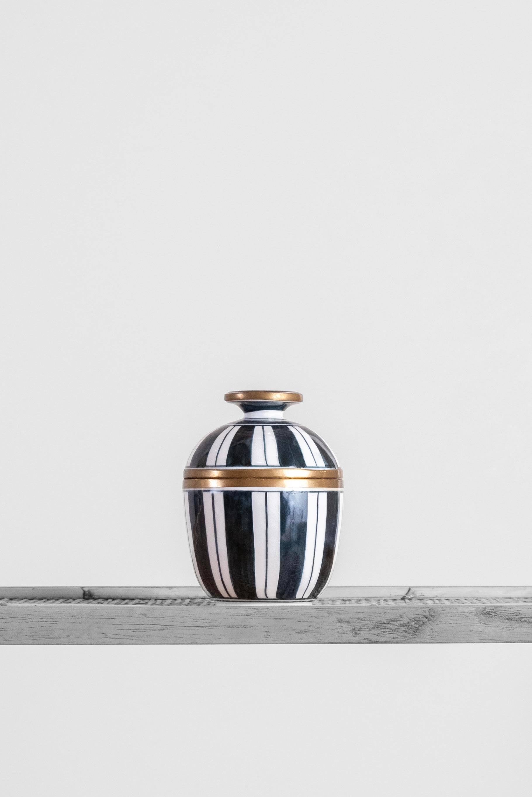 Dekoratif ev aksesuarları koleksiyonunda yeşil desenli beyaz porselen tasarımı ile öne çıkan bleu blanc, kapak detayı ile fonksiyonel bir kullanım sunuyor. Pirinç çerçeve detaylandırmasına sahip bu bleu blanc, evinizin istediğiniz köşesine lüks bir dokunuşta bulunuyor. El Yapımı Seramik