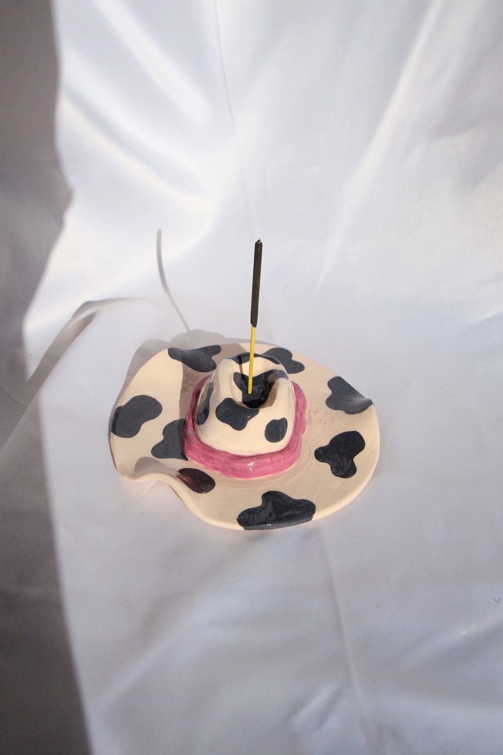 Siyah Beyaz Kovboy Şapkası Tasarımlı El Yapımı Seramik Tütsülük - Kovboy Şapkası Seramik Tütsülük