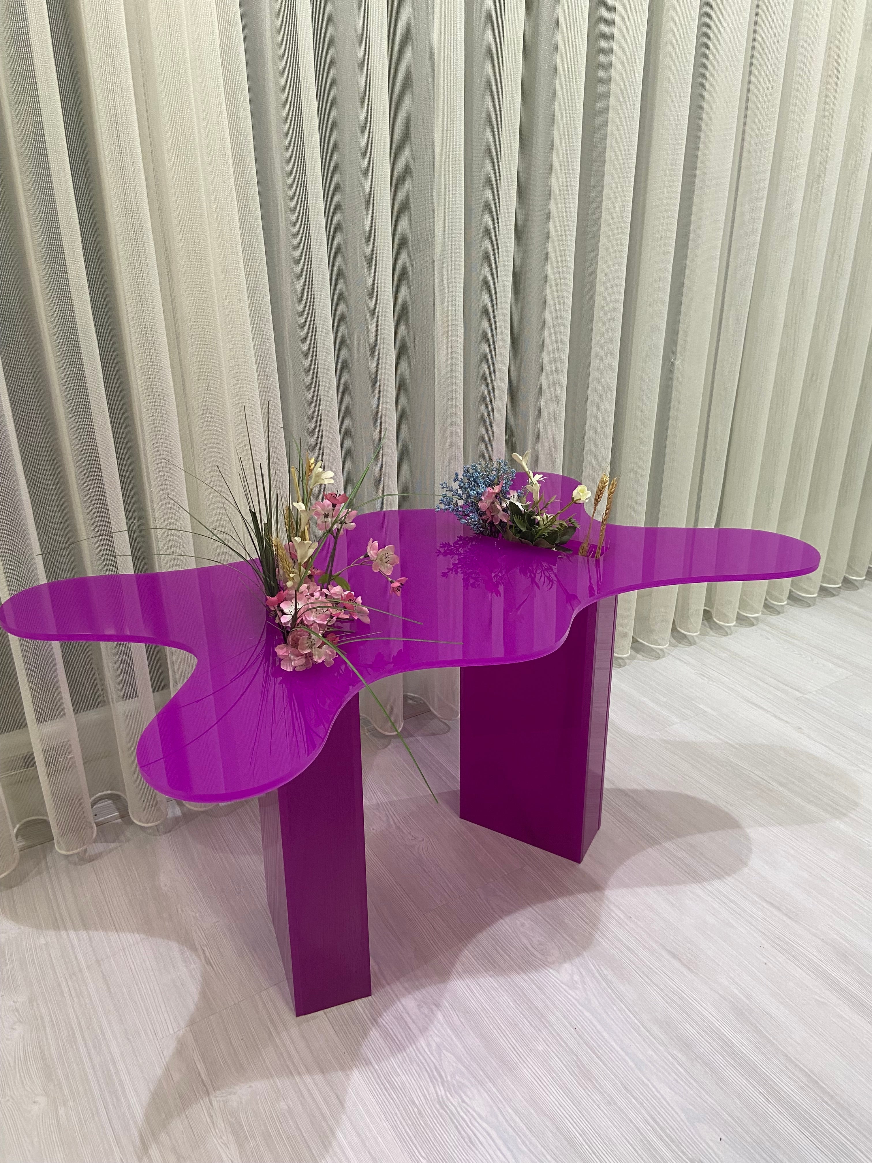 Çiçeklik Detaylı Sofistike Pleksi Orta Sehpa