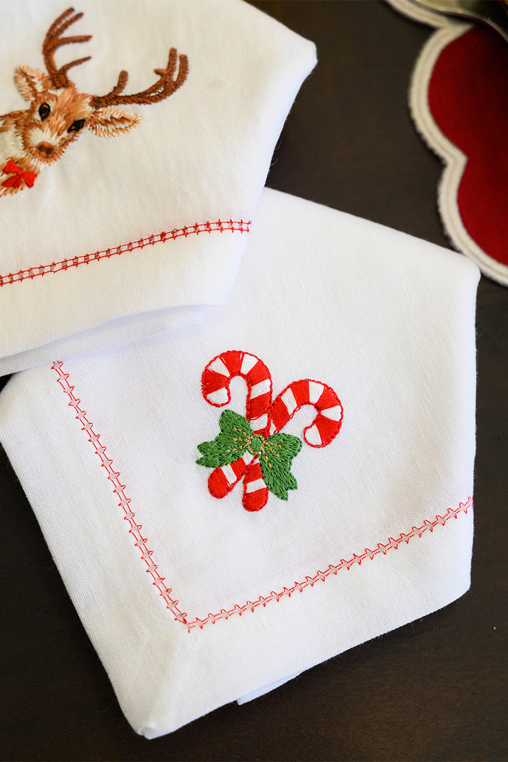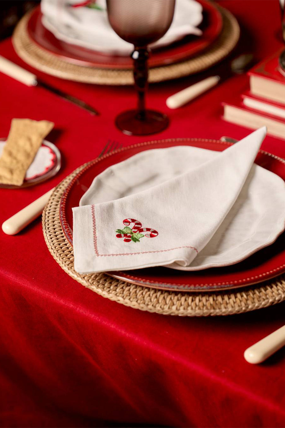 Christmas Candy Cane Nakışlı Peçete – Beyaz / Kırmızı & Yeşil