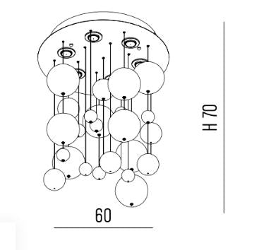 Ürün Özellikleri: Malzeme ve Gövde: Krom/KristalÖlçü: L:60 cm H:70 cm Tasarımcı: MetalluxRenk: Krom/BeyazIşık: Gu10 6X50W
