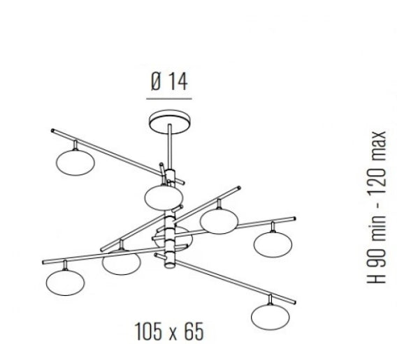 Ürün Özellikleri: Malzeme ve Gövde: Metal/DifüzörÖlçü: L:105 cm H:70 cm Tasarımcı: MetalluxRenk: Krom/BeyazIşık: G9 8X25W