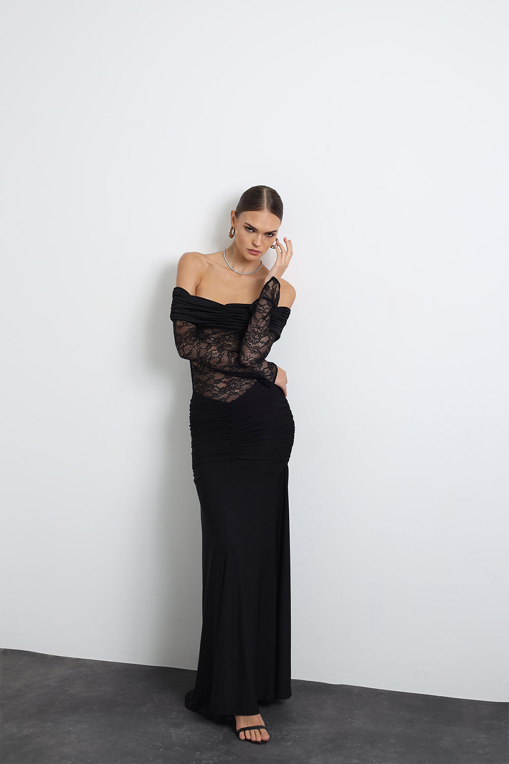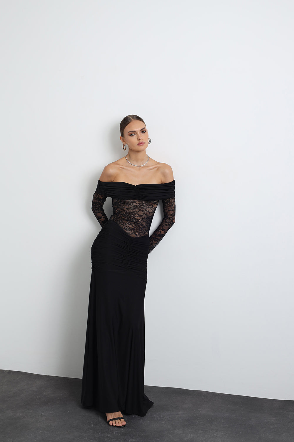 Özellikler: Dantel detaylı, maxi boy, vücuda oturan kesim, zarif doku