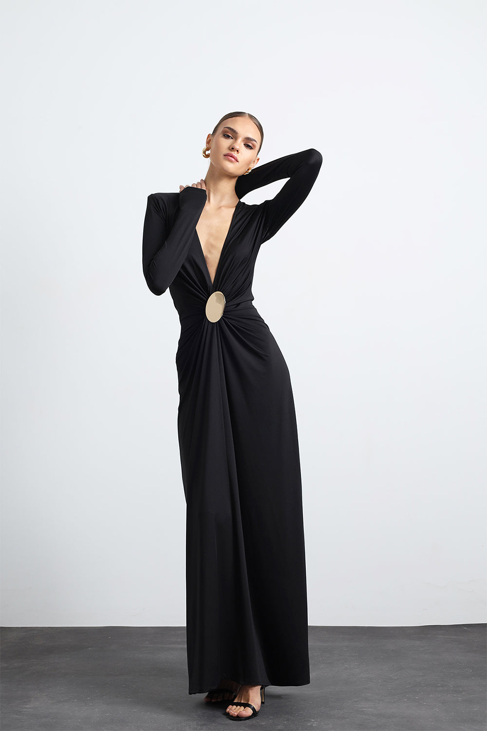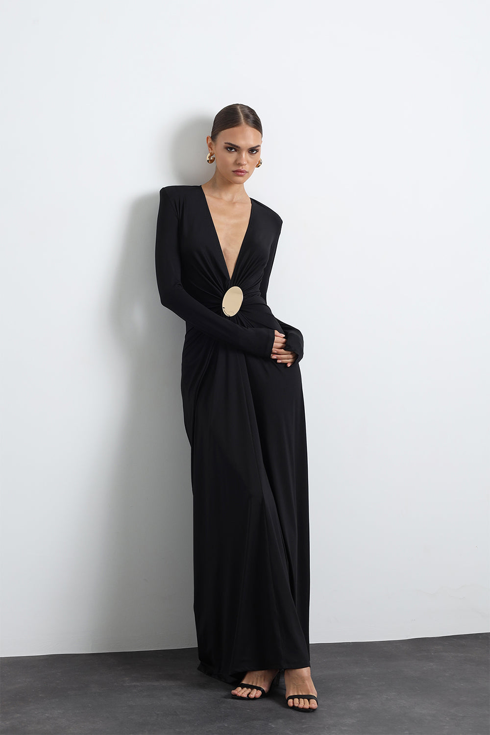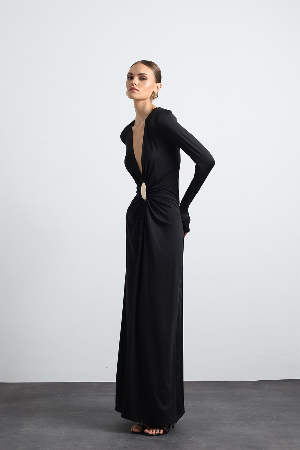 Sayora Uzun Kollu Aksesuarlı Siyah Gece Elbisesi