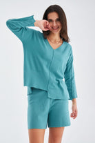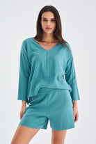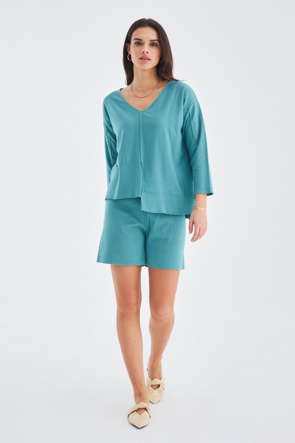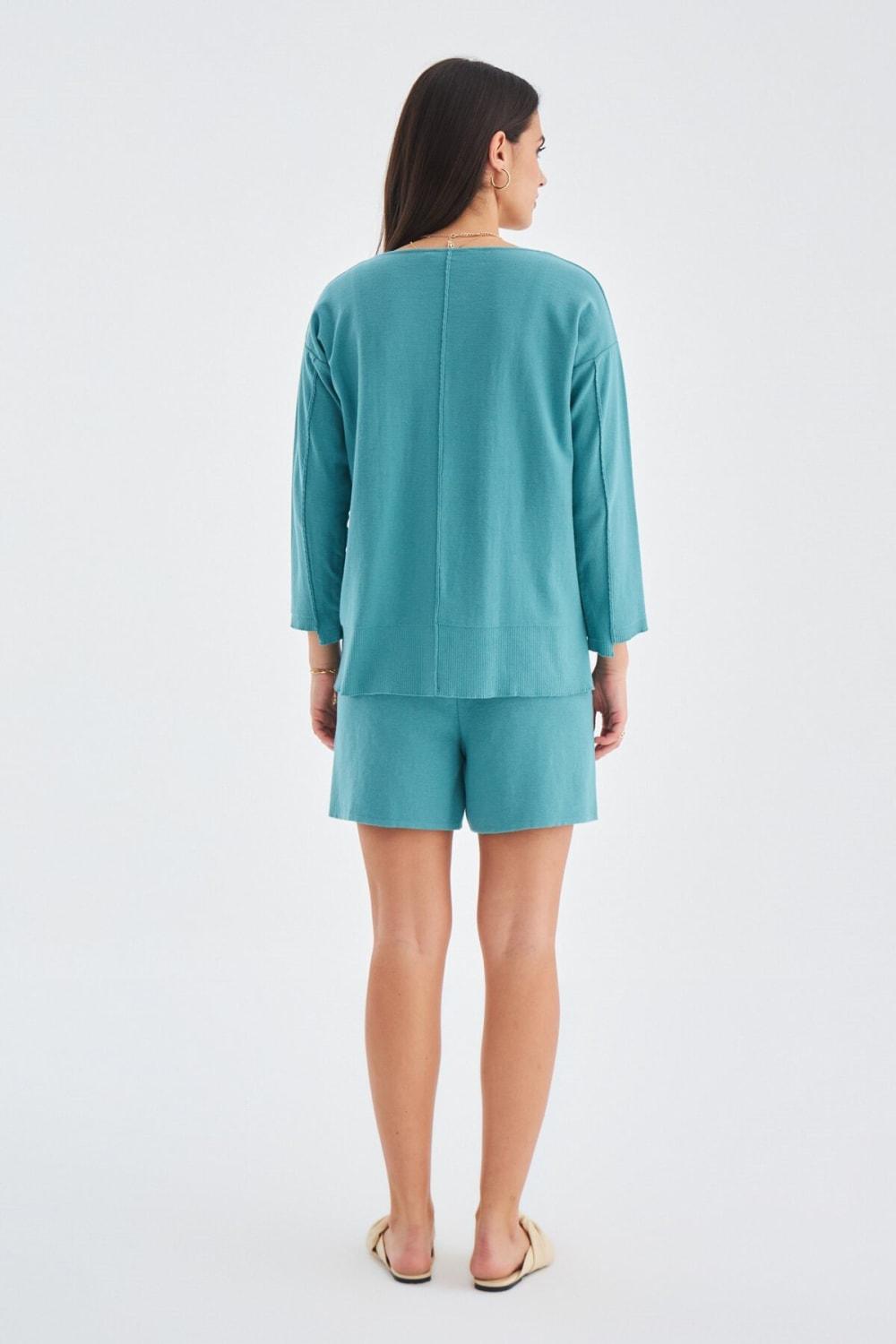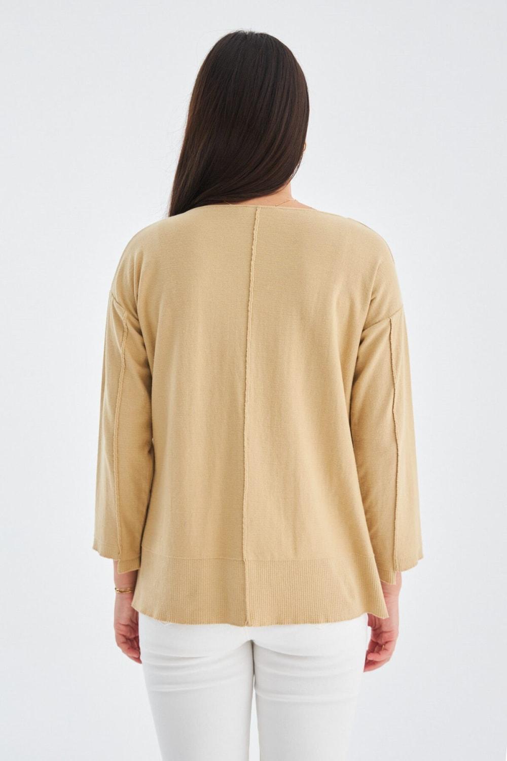 Asymmetric Cut Detail, 3/4 Sleeve, V-Neck, Summer Fine Knitwear Tunic Comfortable CutTeslimat ve İade