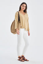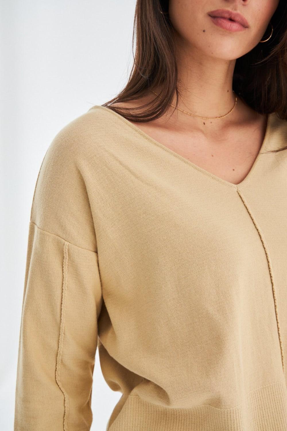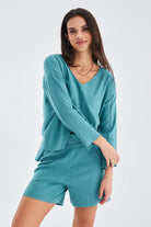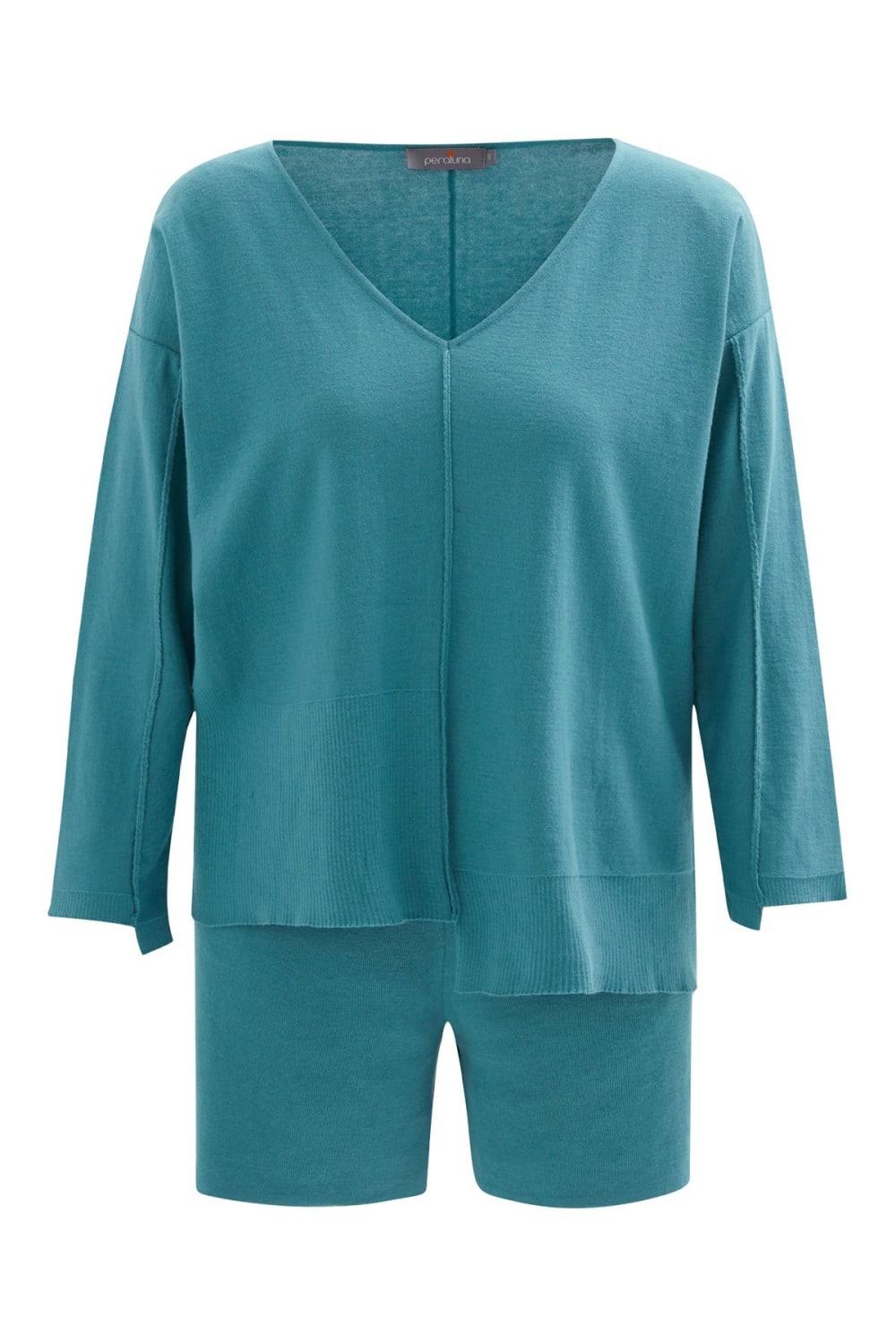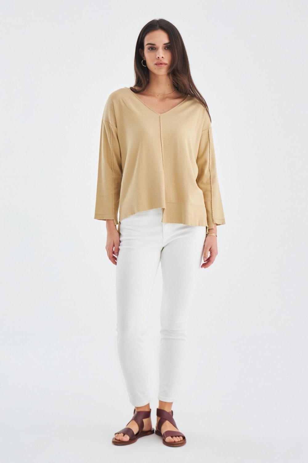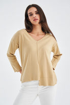 Asymmetric Cut Detail, 3/4 Sleeve, V-Neck, Summer Fine Knitwear Tunic Comfortable CutTeslimat ve İade