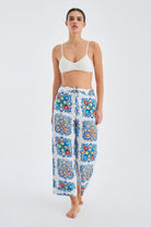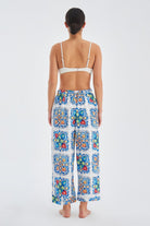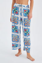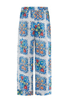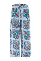 Ri̇a Trouser Tile Patterned Loose Cut Summer Satin Women's Trousers Multi Color