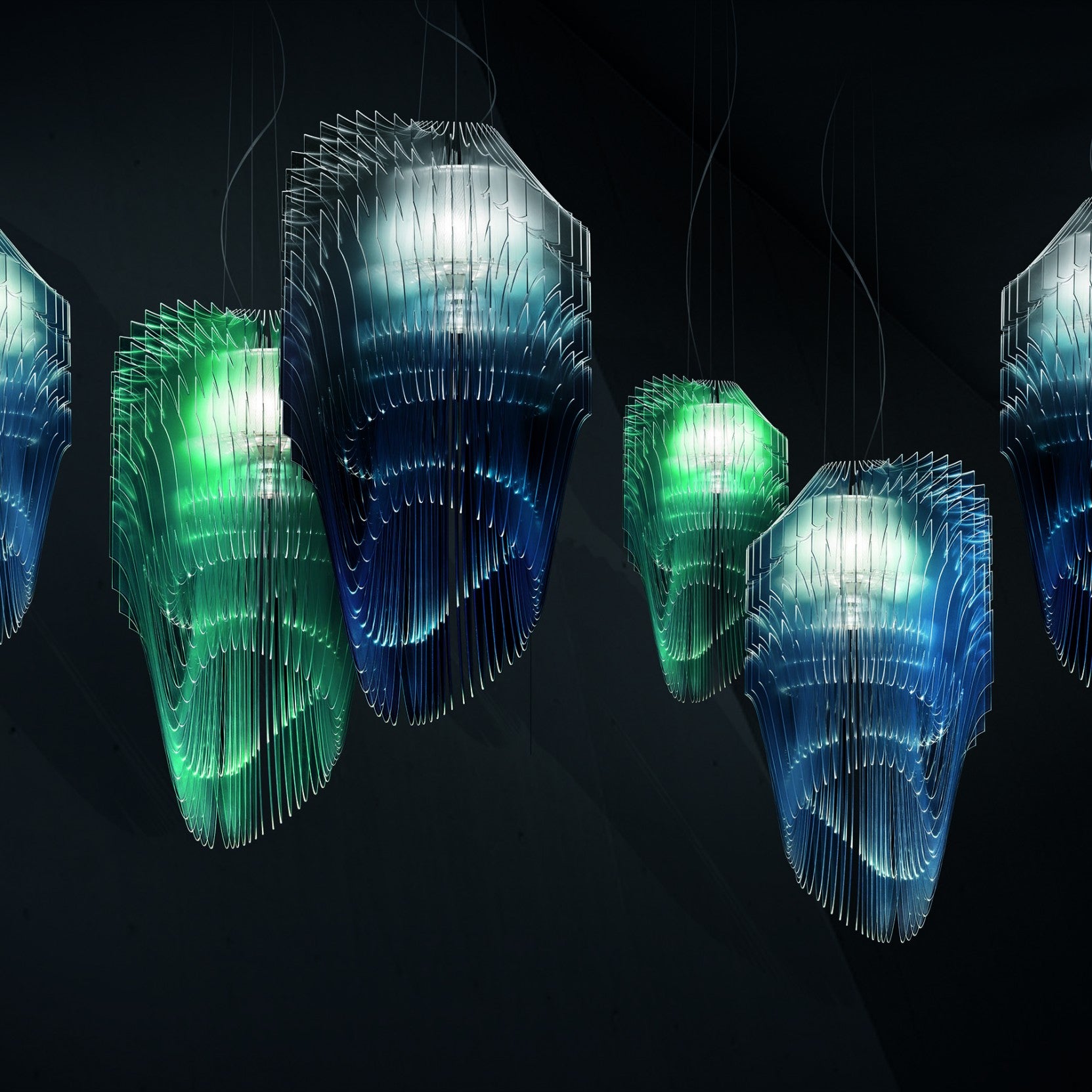 Zaha Hadid’in vizyoner, akışkan ve dinamik ışıklı mimari objeleri, tasarımcının devrim niteliğindeki ikonik dilini her türlü ev veya kamusal alana taşır ve varlıklar ile atmosferler arasında uyumlu bir etkileşim ilhamı verir. Avia, büyük ölçekli yapıların görkemini gündelik bir lambaya taşırken, teknik ve hacimli formları yenilikçi aydınlatma teknolojisiyle birleştirir. Elli farklı Cristalflex® katman, merkezi ışık kaynağını kusursuz bir yapı içinde çevreleyerek, ışıktan bir heykel yaratır.