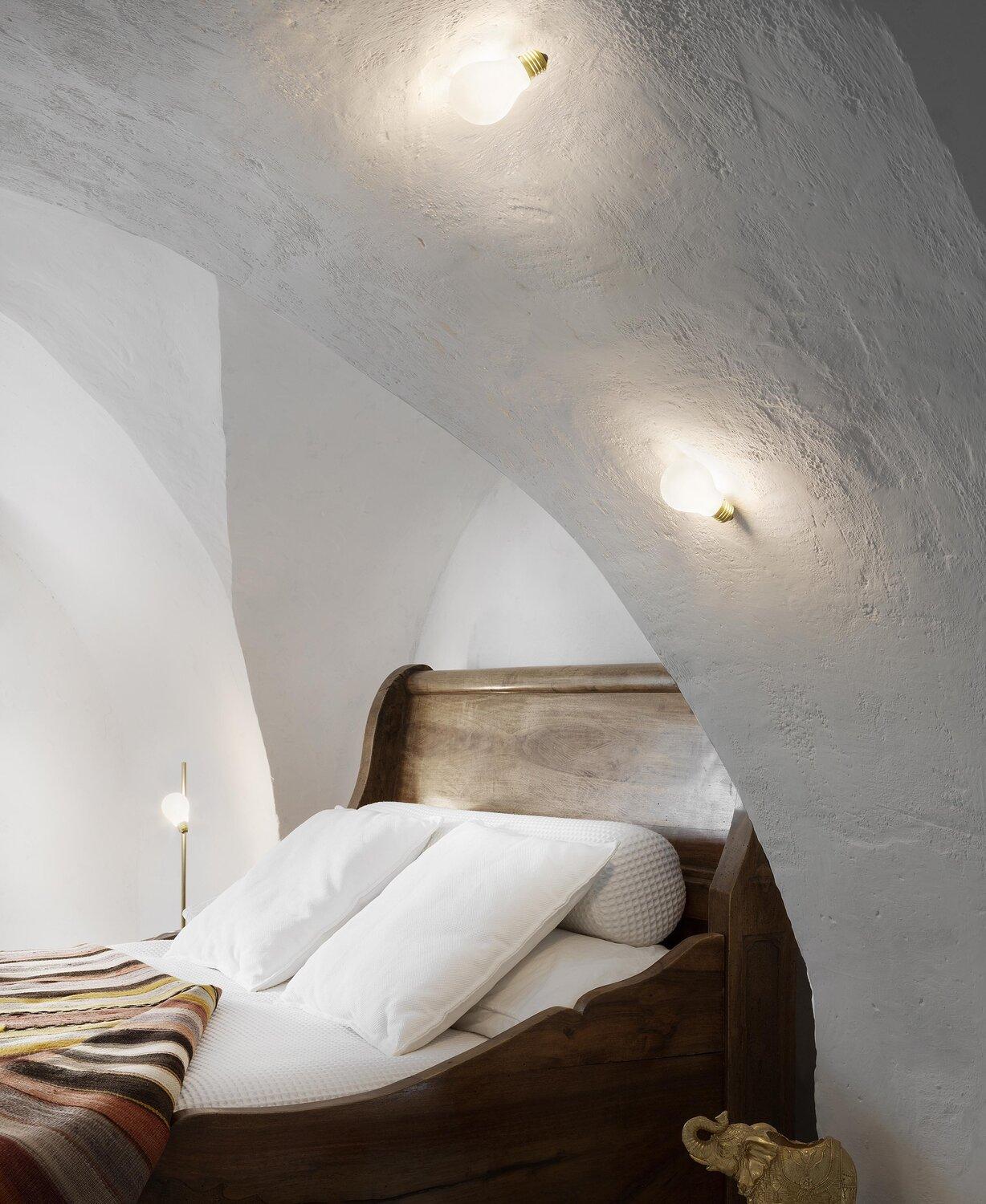 Idea, tasarımı tüm süslemelerden arındırarak ışığın özünü ortaya çıkarır — üç boyutlu bir “ampul” formu ve pirinç kaplamalı vida tabanı, fırçalanmış pirinç kaidesi üzerinde sihirli bir şekilde asılı durur.