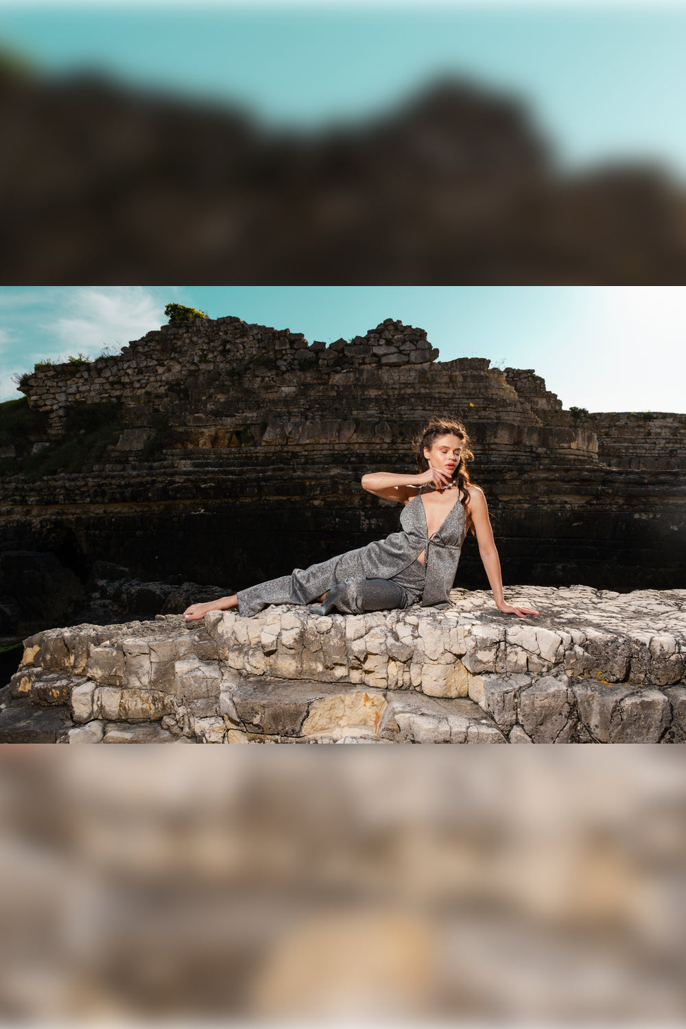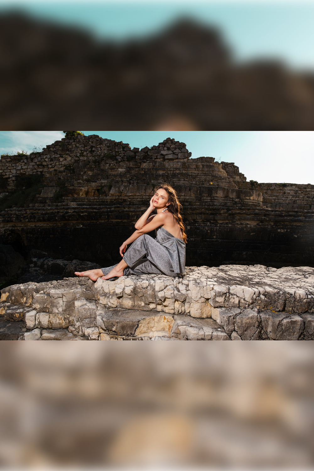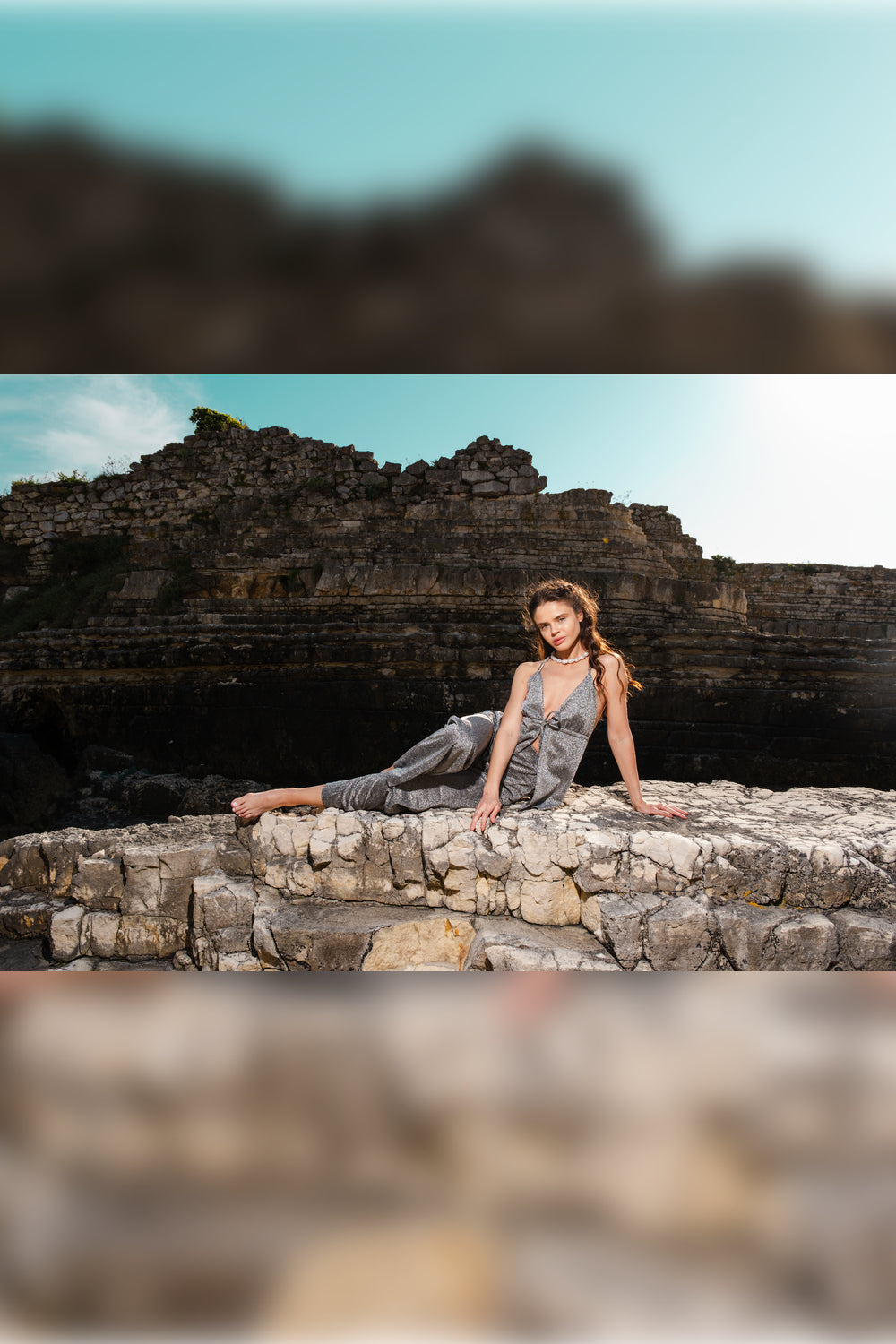 Modelin ölçüleri: Boy 172cm, Göğüs 84cm, Bel 63cm, Kalça 90cm.