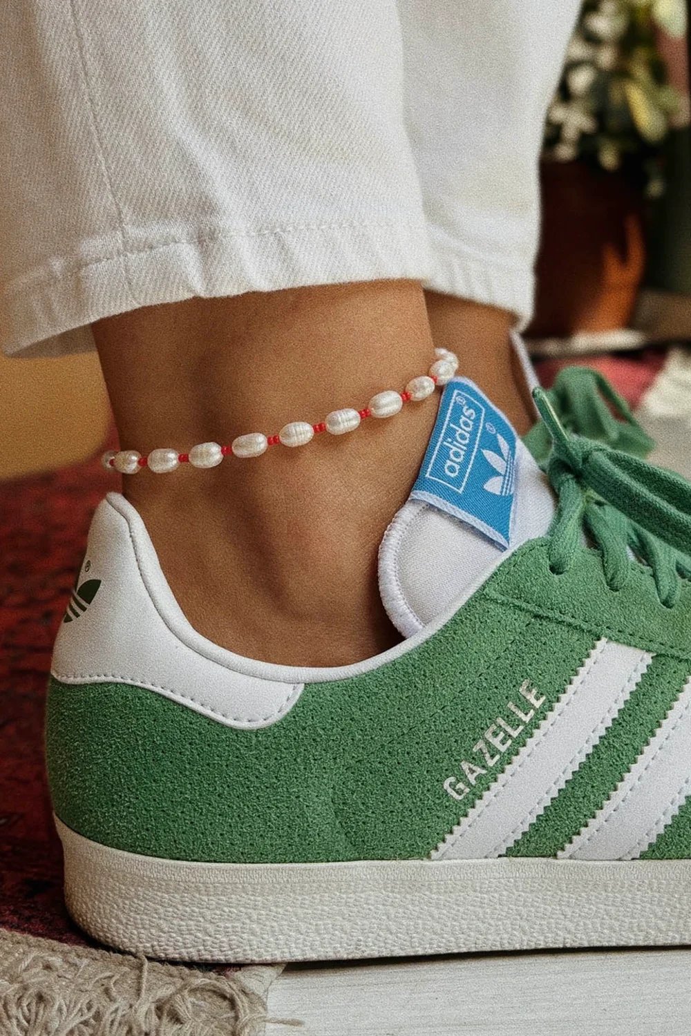 Kırmızı Detaylı İnci Halhal | 925 Ayar Gümüş