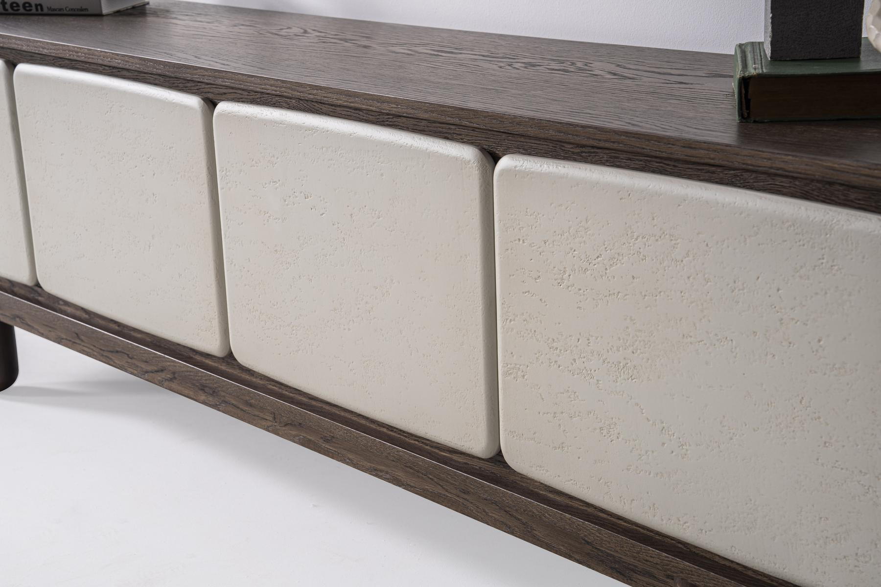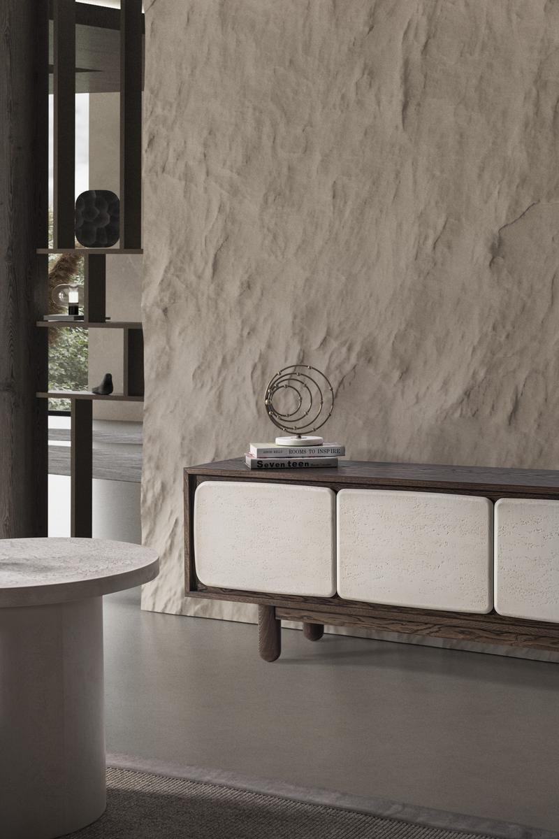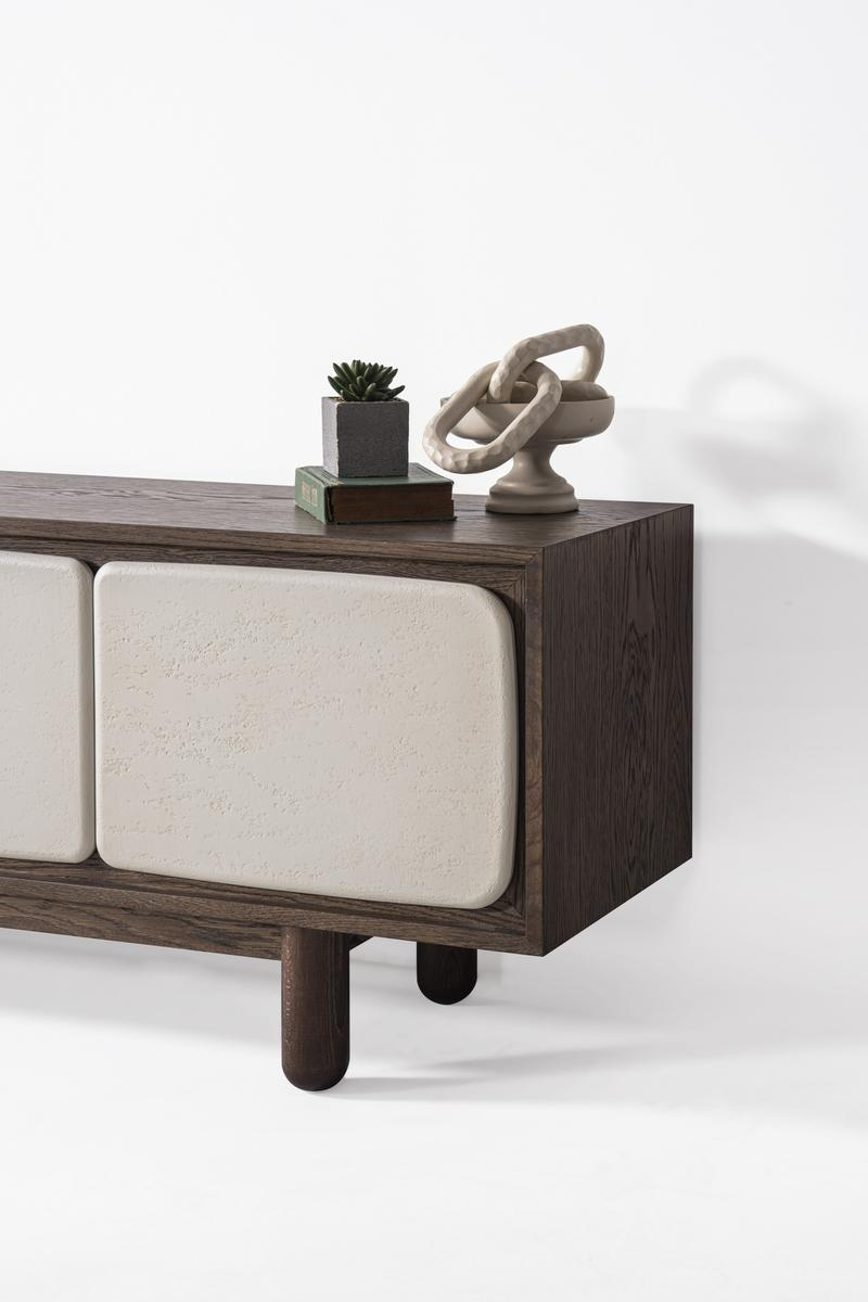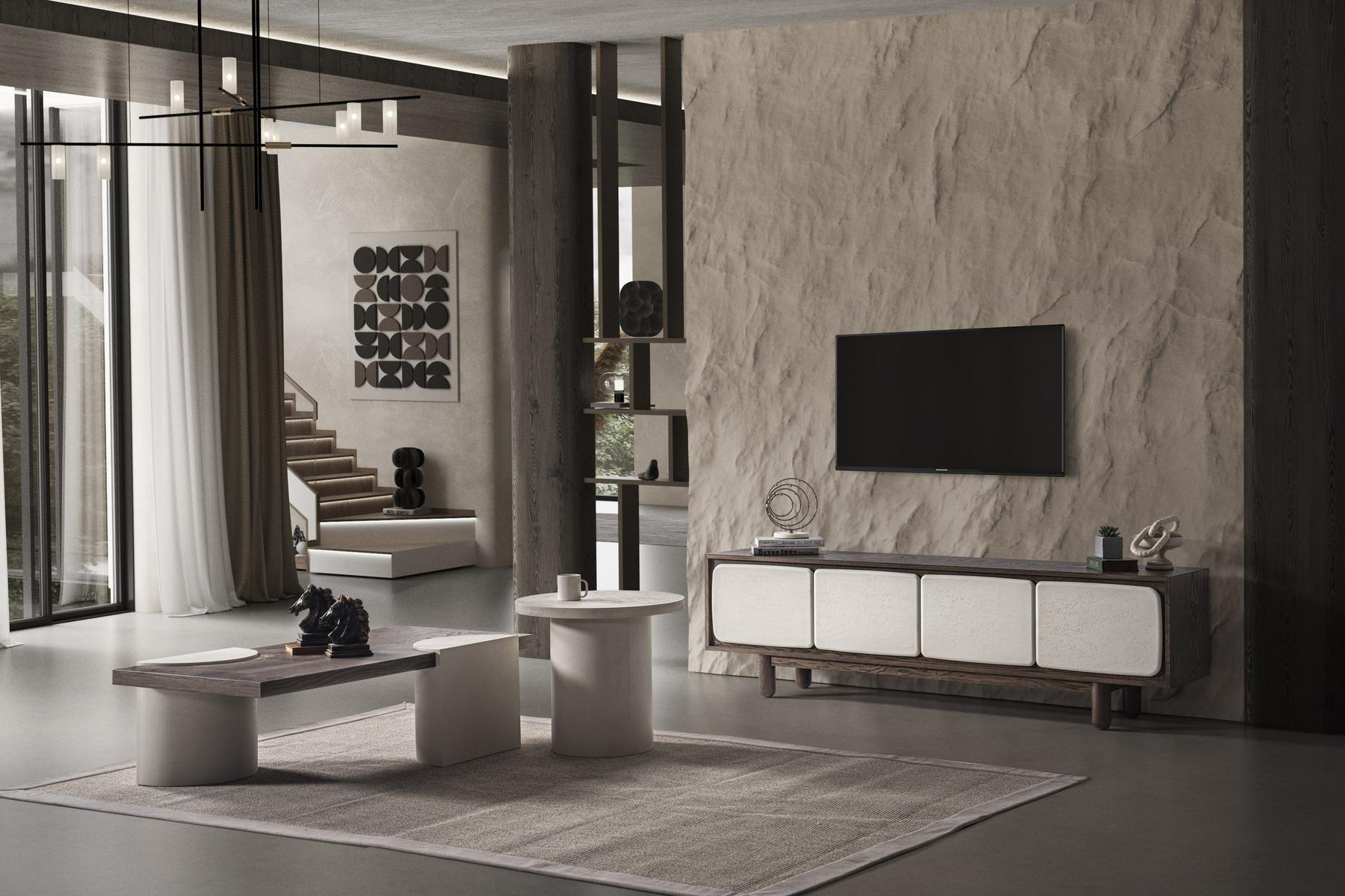 Kapadokya Tv Sehpası yalın duruşuyla minimal estetiği yansıtıyor. Doğadan ilham alan dokusu ve nötr tonları sayesinde sade ama iddialı bir atmosfer yaratmak isteyenler için ideal bir tercih.