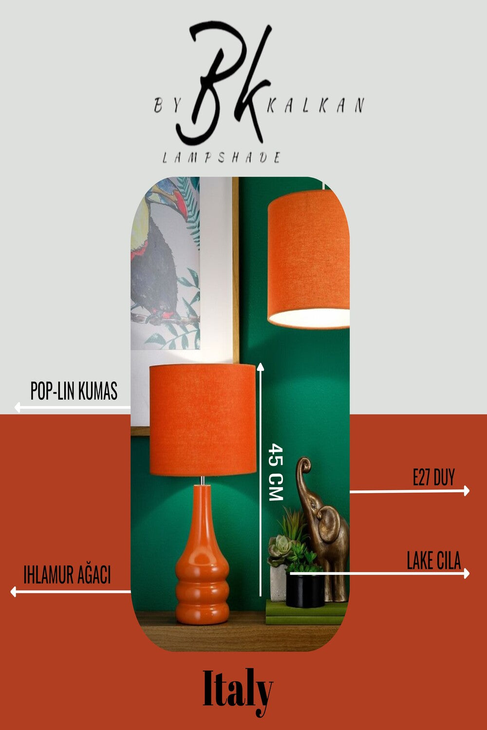 Italy Ahşap Ayaklı Lake Cilalı Abajur, Masa Lambası