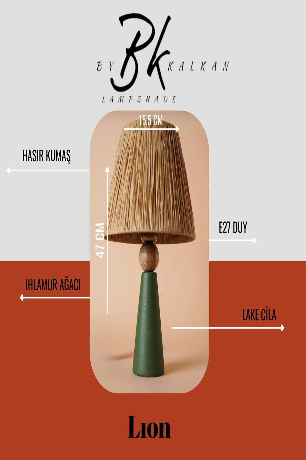 Lion Ahşap Ayaklı Lake Cilalı Abajur, Masa Lambası